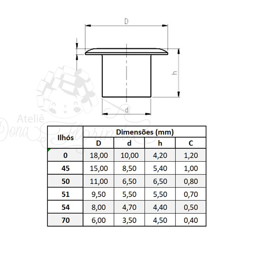 100unid Ilhós COM Arruela Níquel Nº 0 - 45 - 50 - 51 - 54 - 70