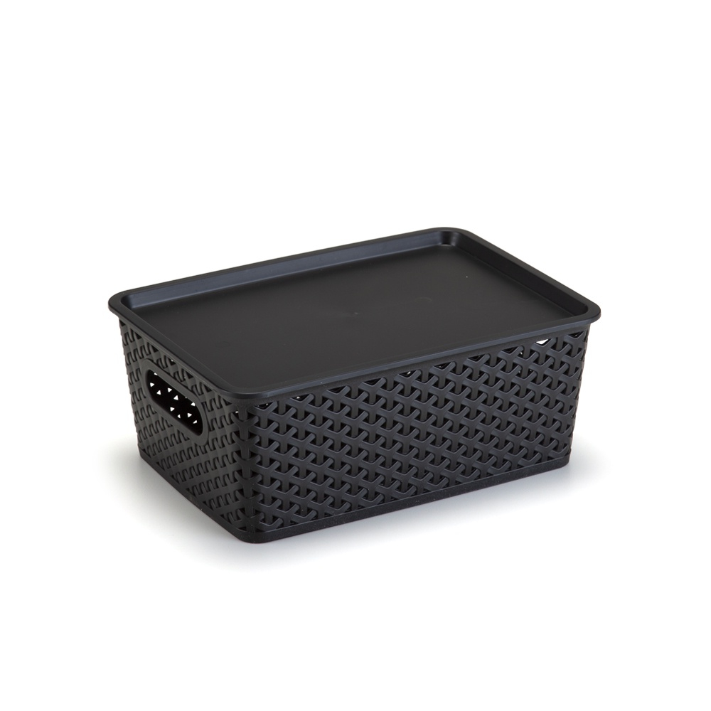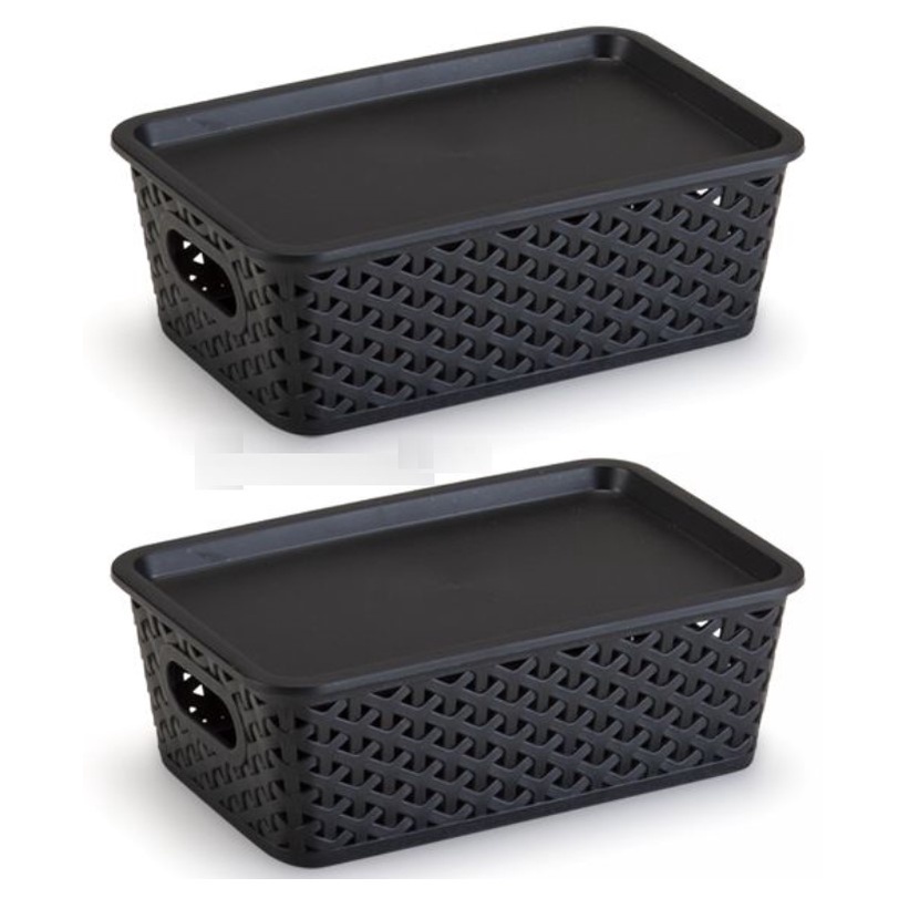 2 Caixas Organizadoras Rattan Preta 3 Litros C/ Tampa