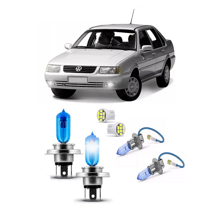 Kit 4 Lampada Super Branca Farol e Milha Santana 1999 2000 2001 2002 2003 2004 2005 2006 8500k H4 H3