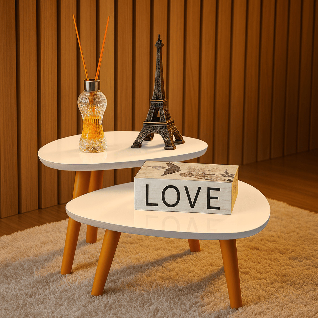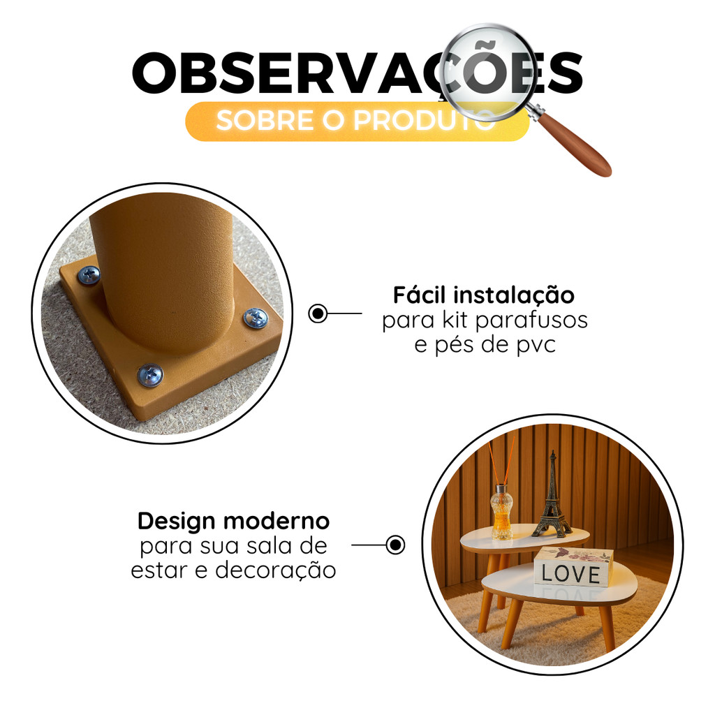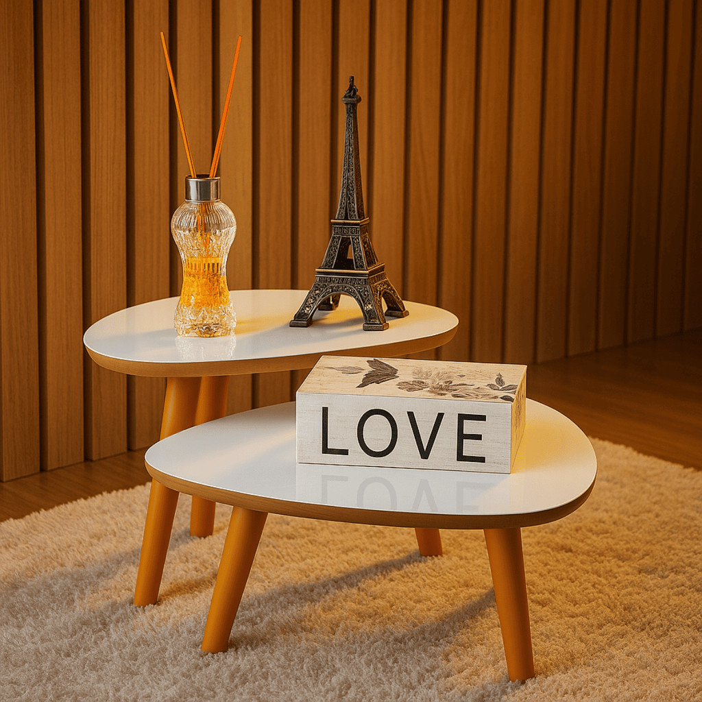 Conjunto 2 Mesas De Centro Francie Com Pés Plástico PVC Caramelo Para Sala De Estar Decorativa Elegante