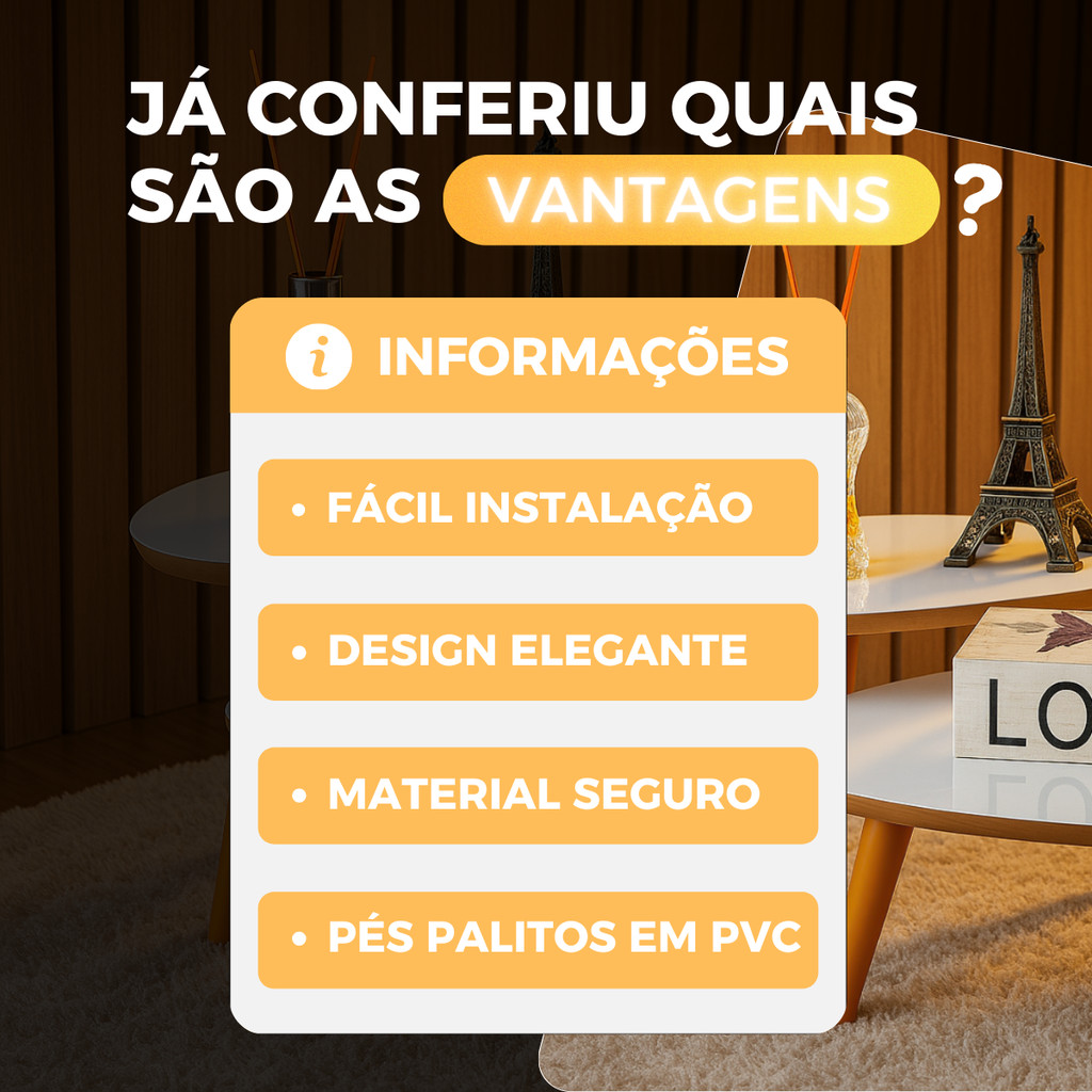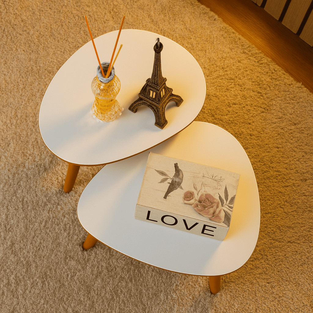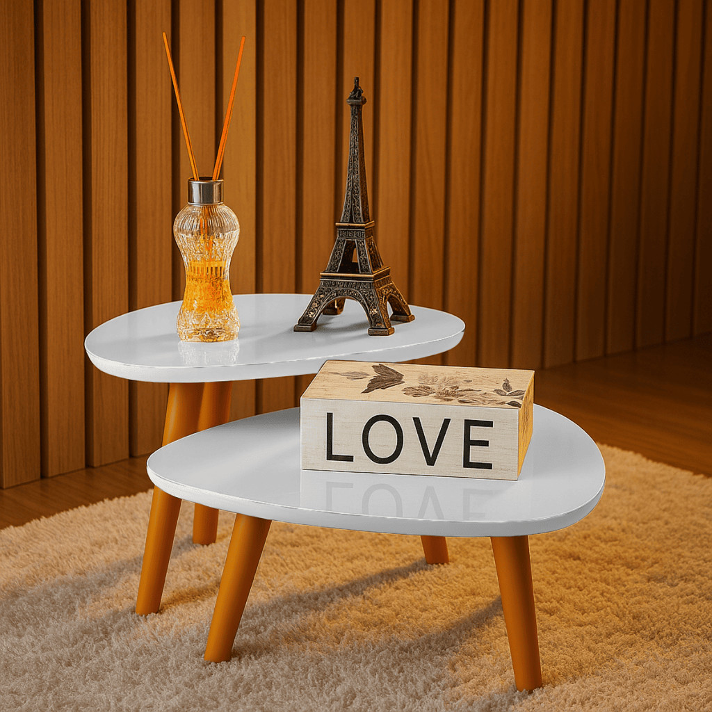 Conjunto 2 Mesas De Centro Francie Com Pés Plástico PVC Caramelo Para Sala De Estar Decorativa Elegante