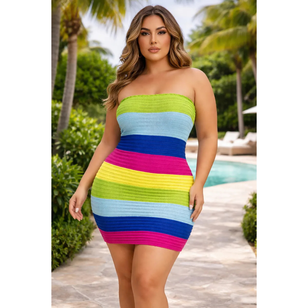 Vestido Virginia Colorido Tomara que Caia Trico Modal Slim - Plus Carnaval Tendência
