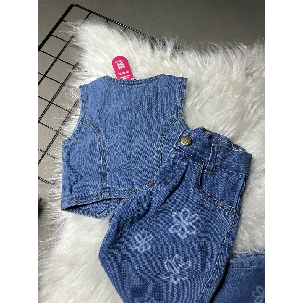 Conjunto Calça e Colete Jeans Infantil Menina Wide Leg OPL KIDS