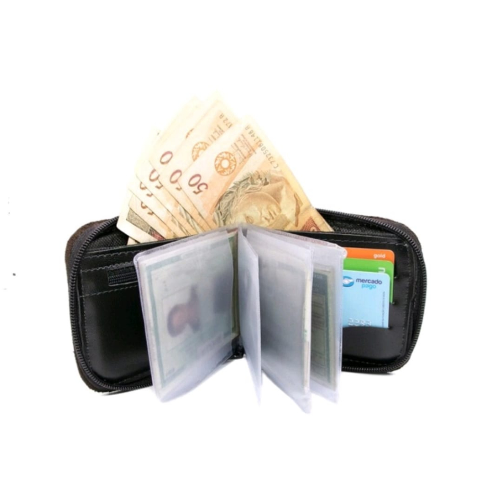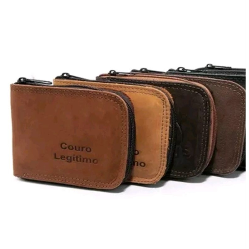 Carteira de couro fechamento ziper com porta moedas ideal para presente cores variadas City Man