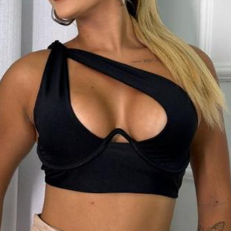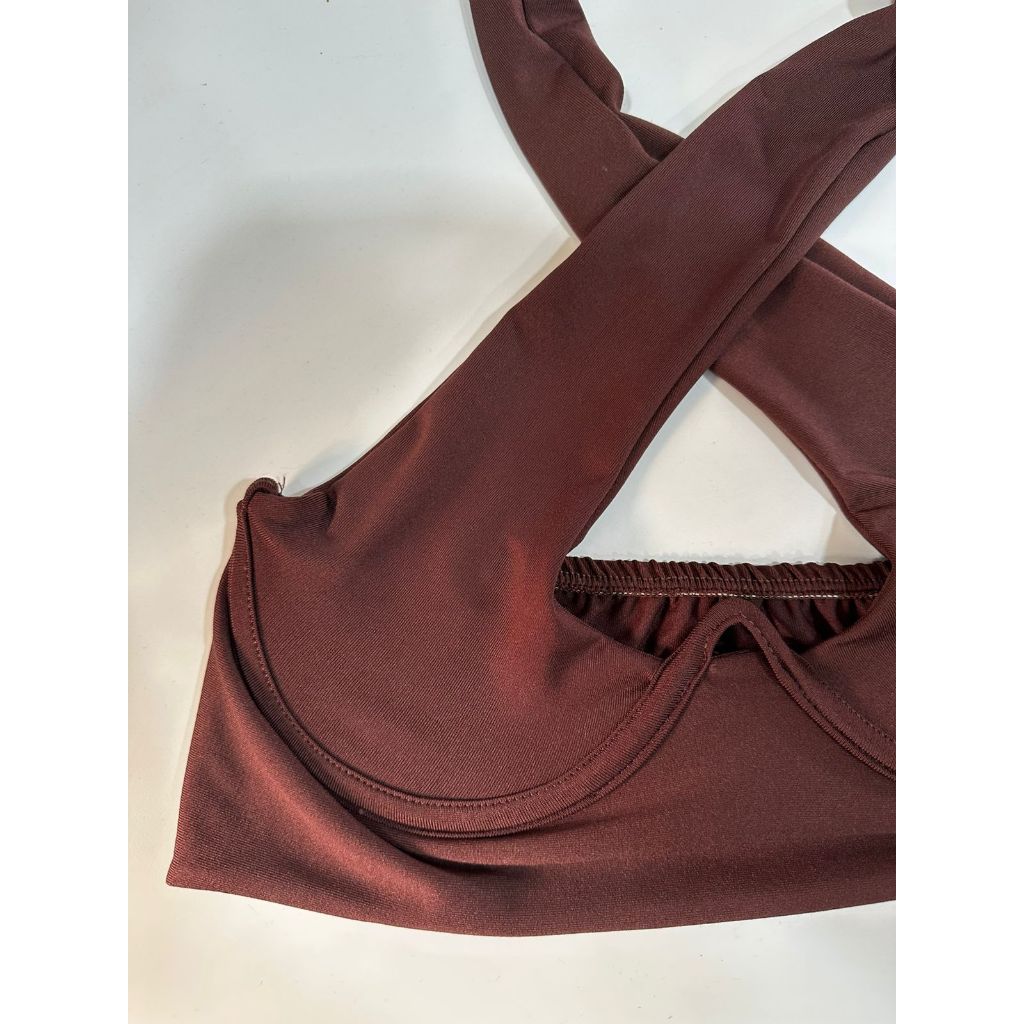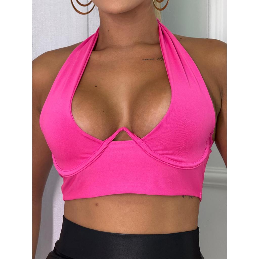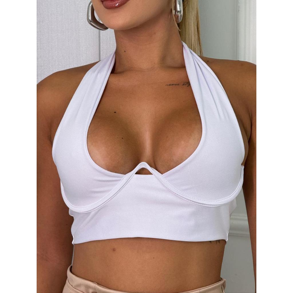 Cropped Lia Estruturado com Ferrinho Levanta Seio Suplex Poliamida com Decote Amarração Ajustavel Moda Feminina Blogueir