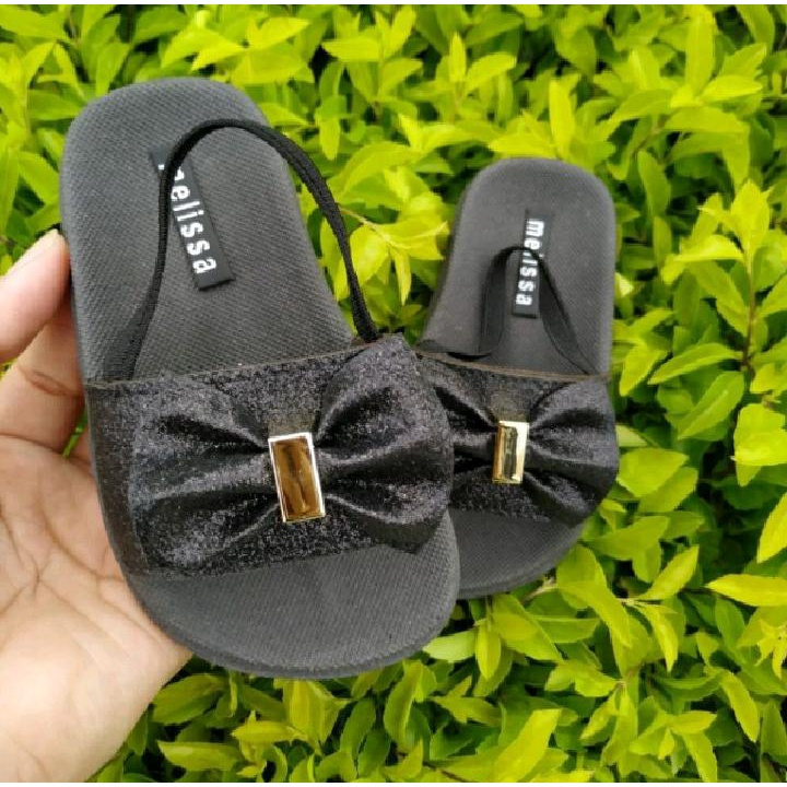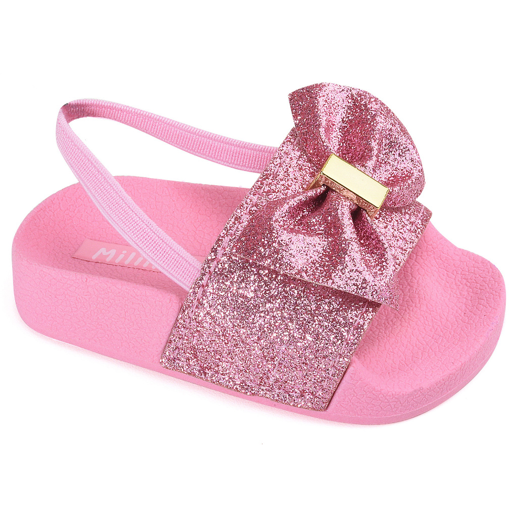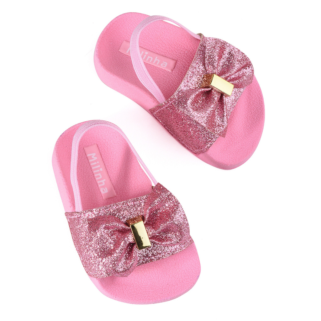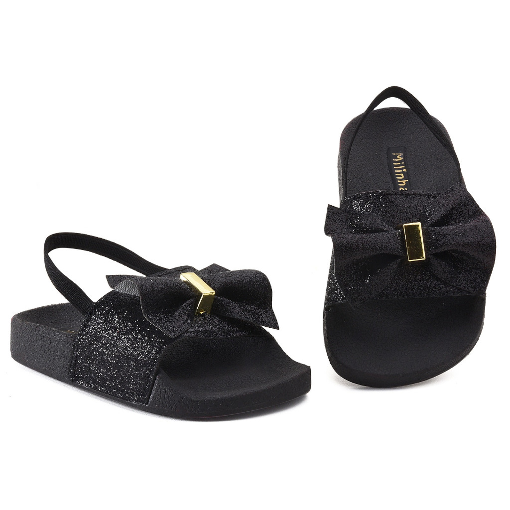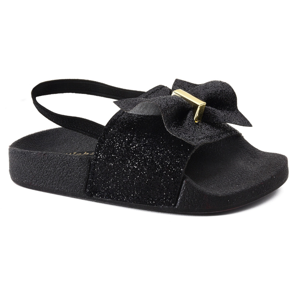 Sandalia de bebe menina com elastico nao escorrega gliter laço rosa preta