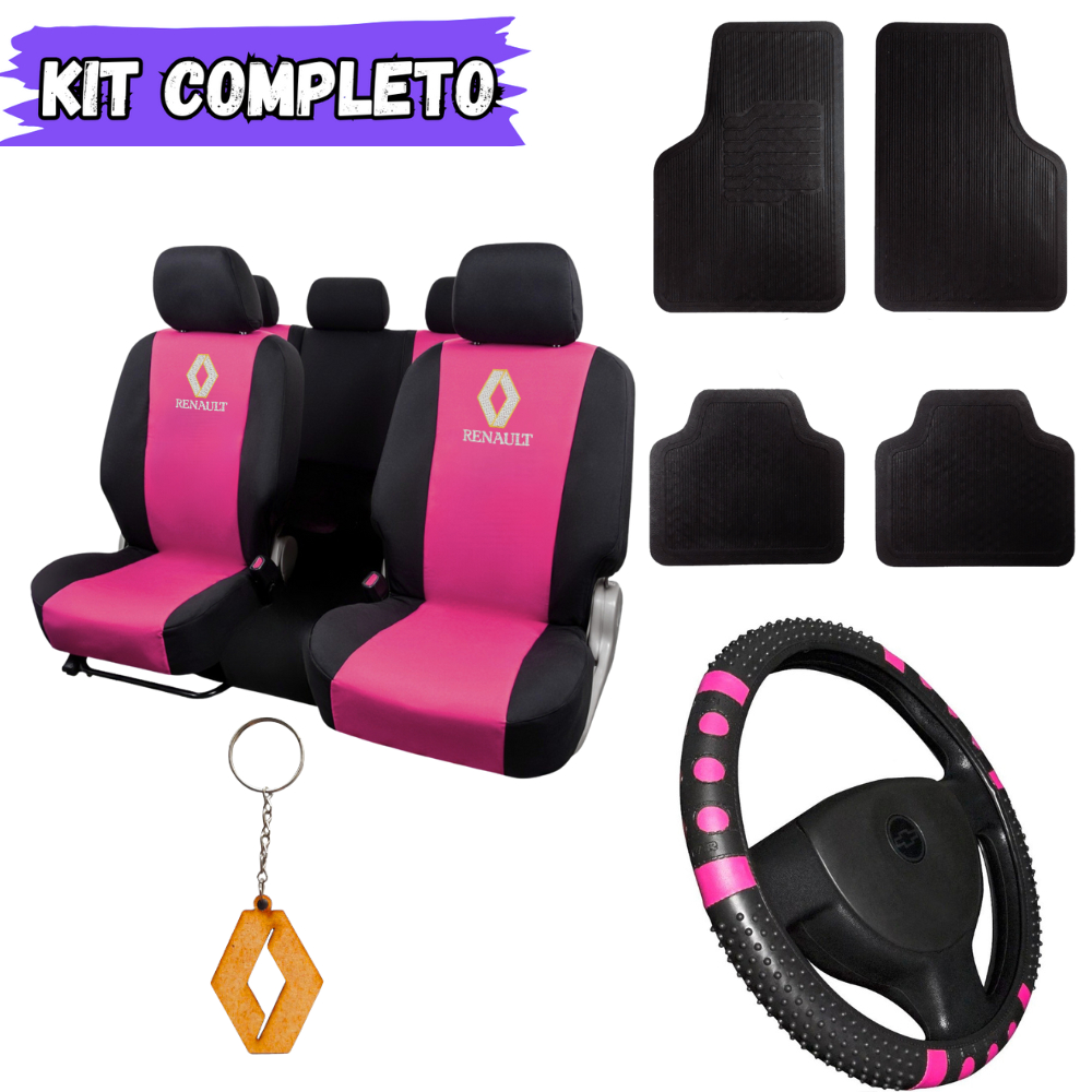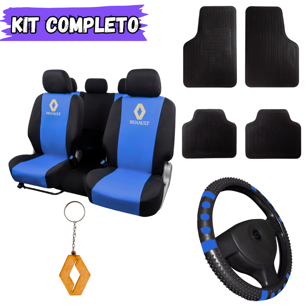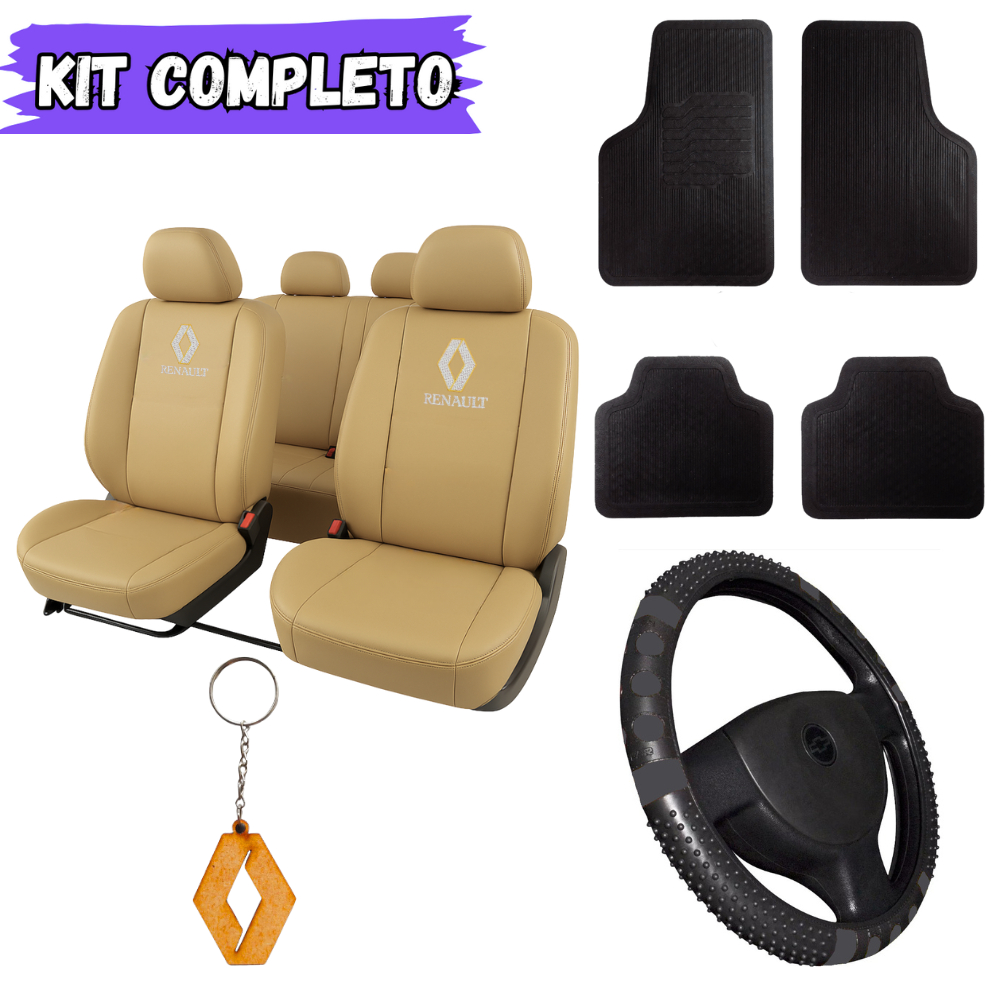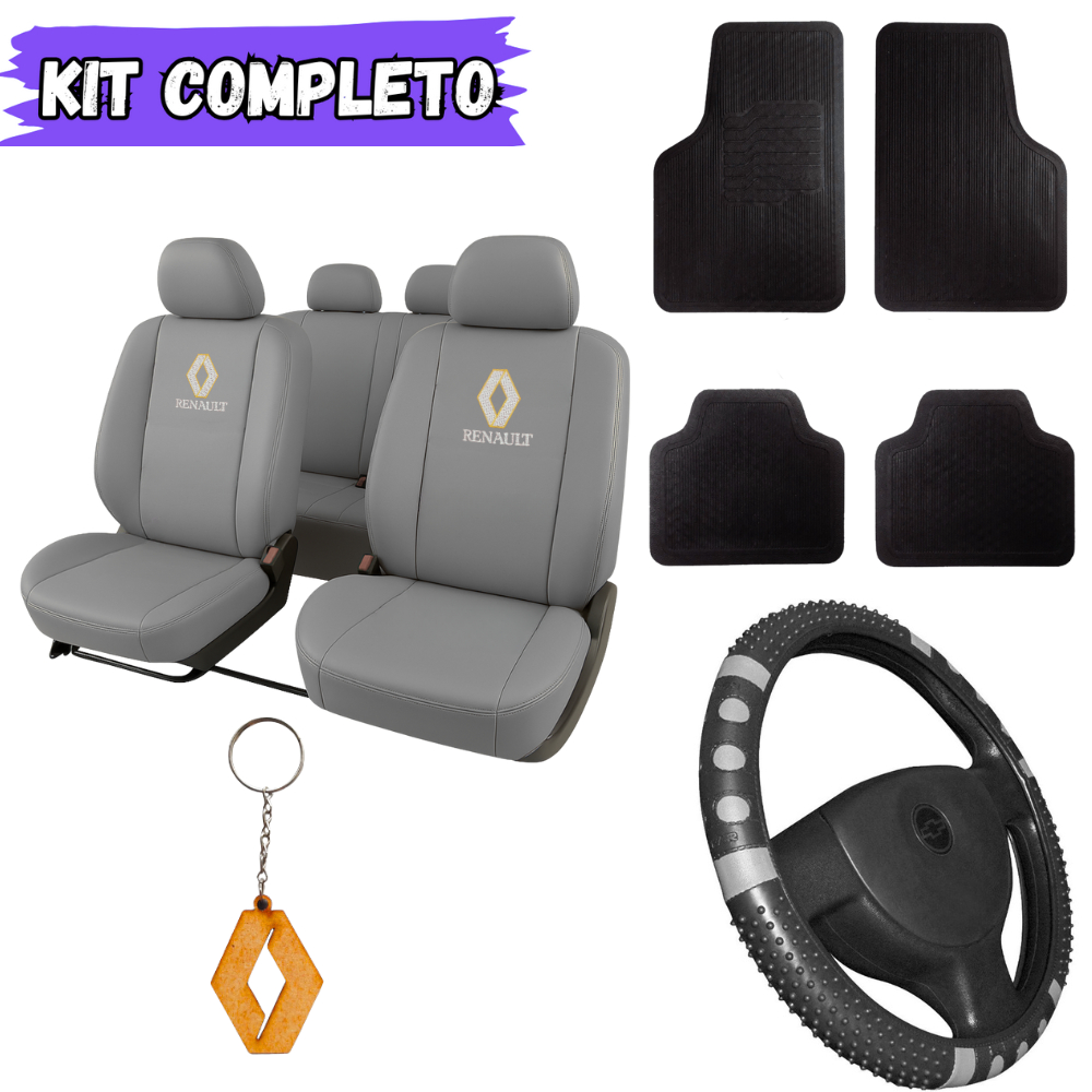 Kit Capas de Banco Couro + Tapete + Volante – Carro Reno Renault Duster Clio Logan Sandero Symbol Fluence