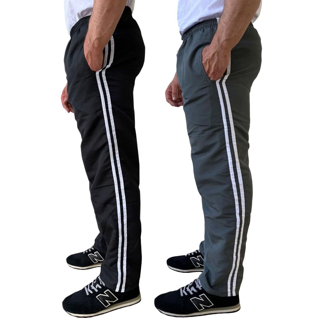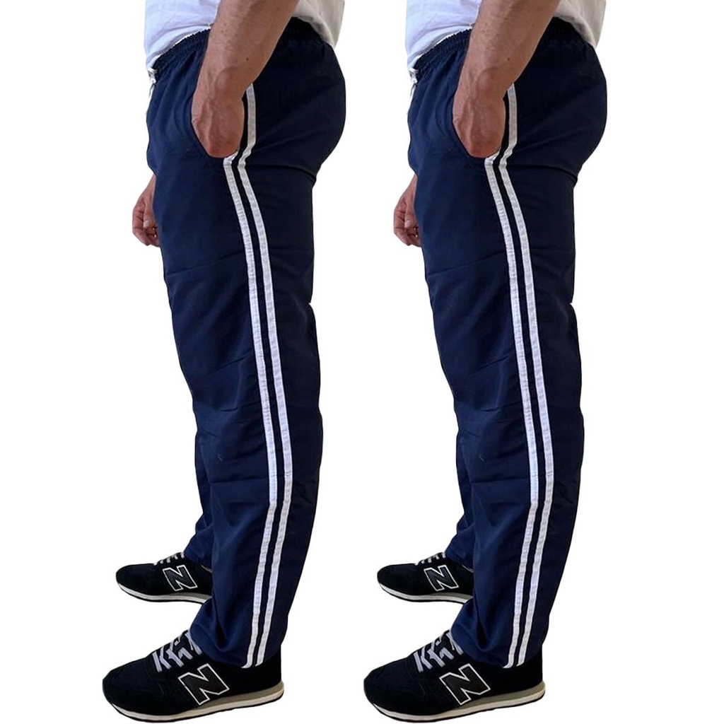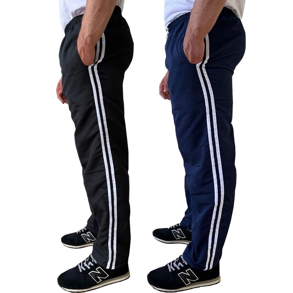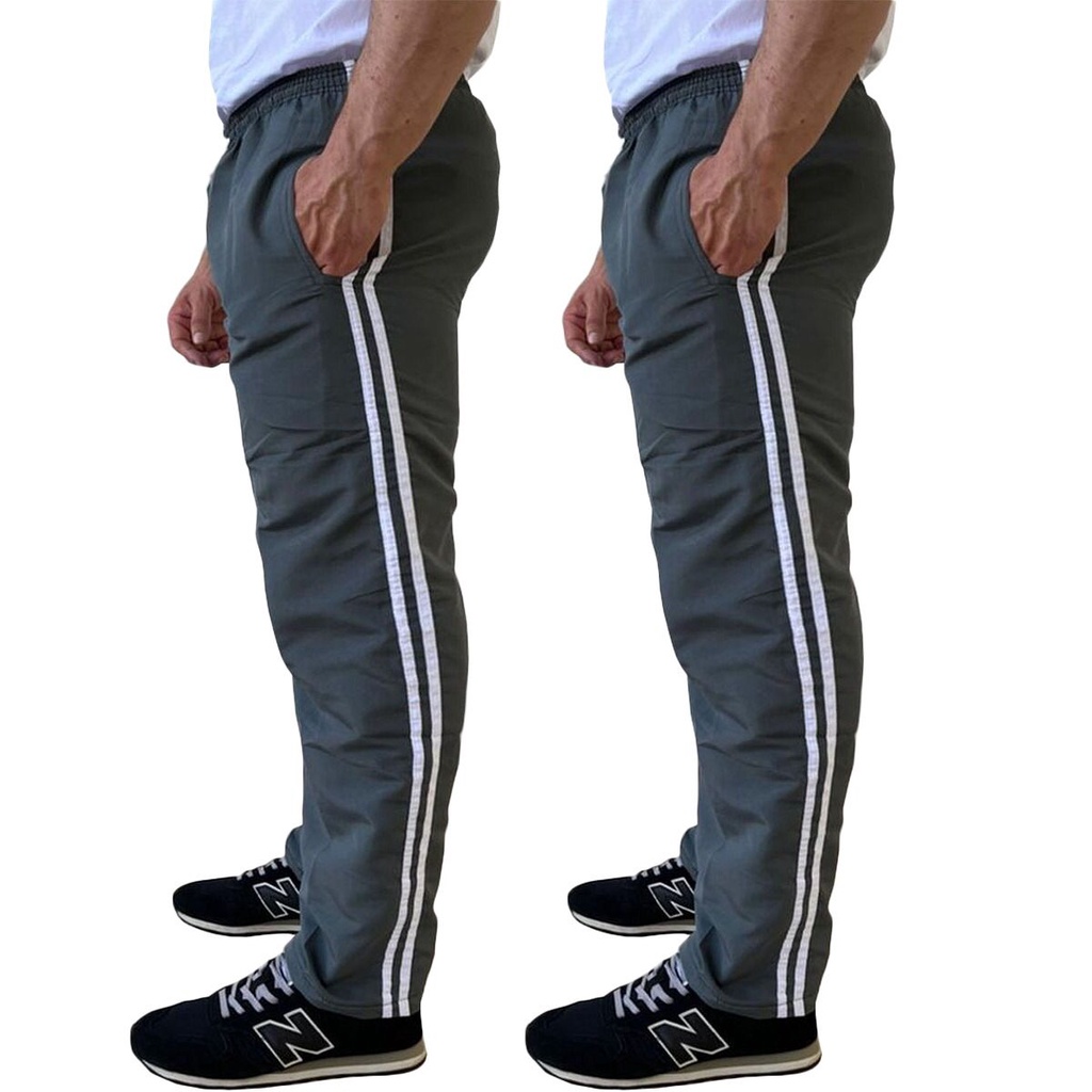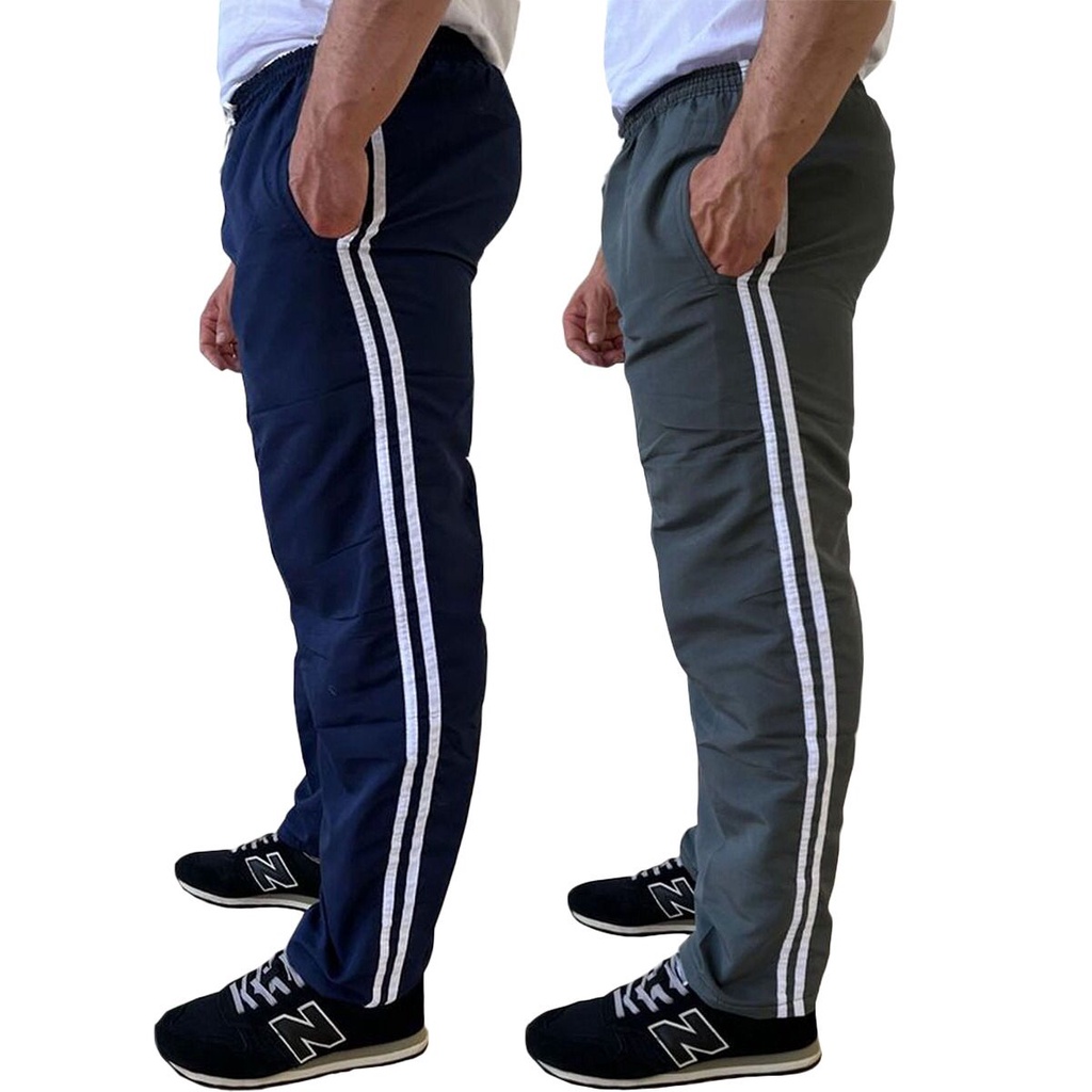 Kit 2 Calça Masculina Tactel 3 Bolsos 3 Listras