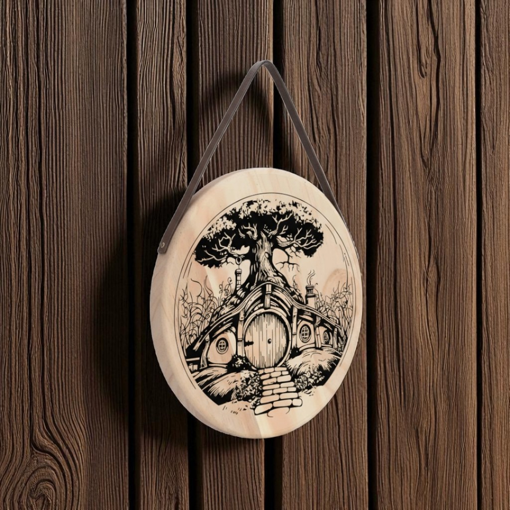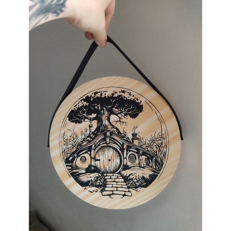 Placa porta madeira pinus decoração hobbit senhor dos anéis