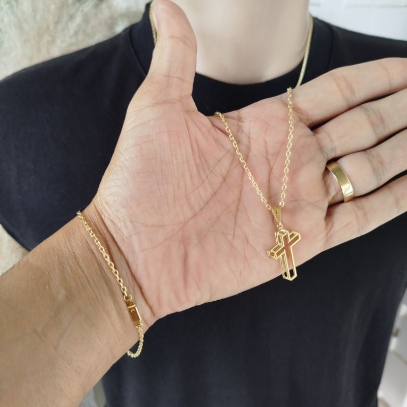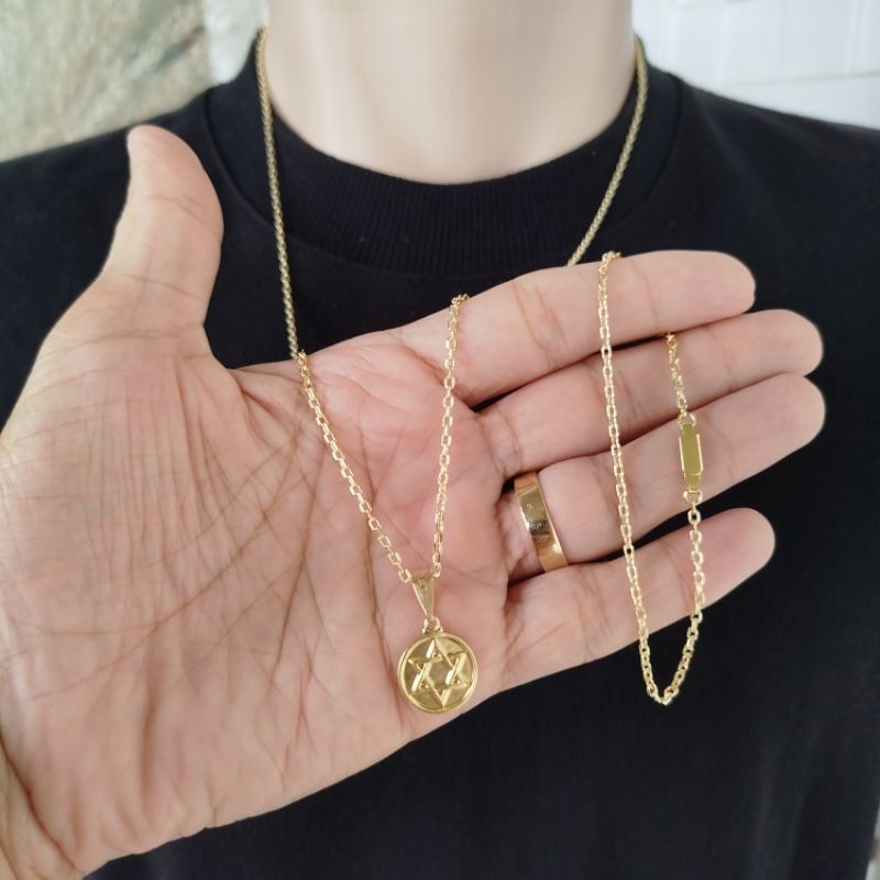 Kit completo 100% Moeda Antiga Cordão com Pulseira e Pingente Cadeado 2mm Corrente Masculina Homens