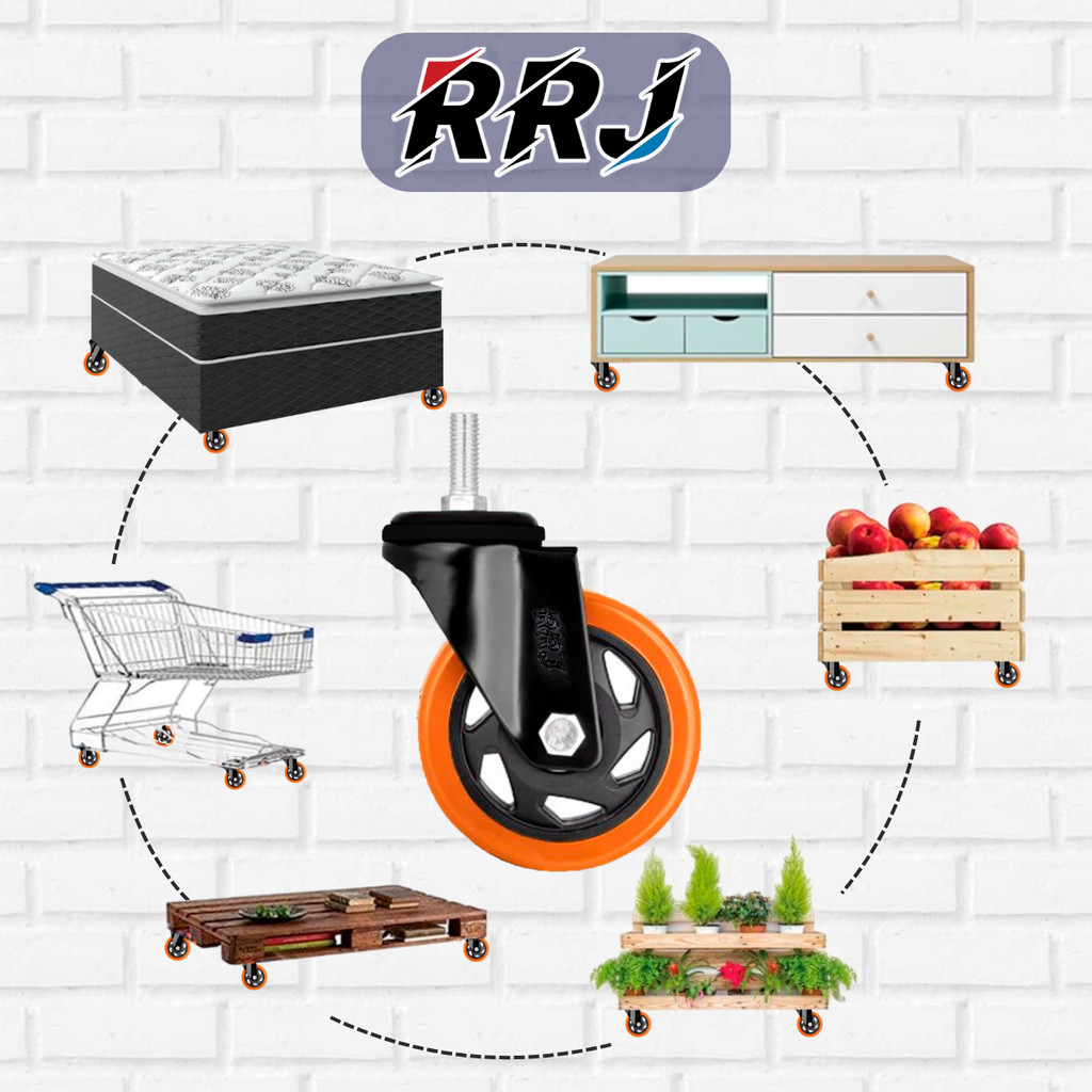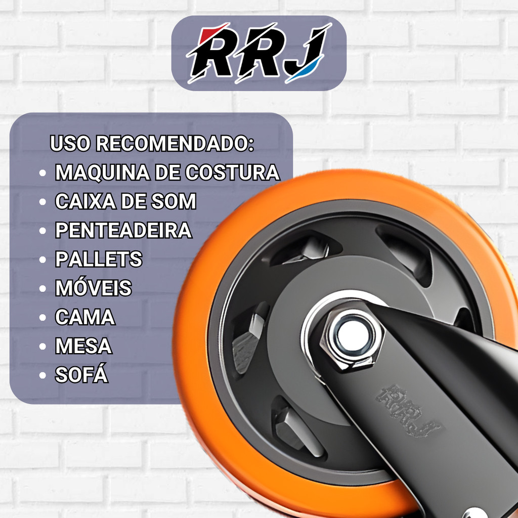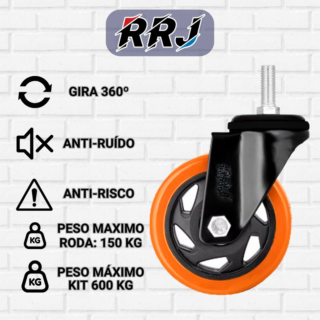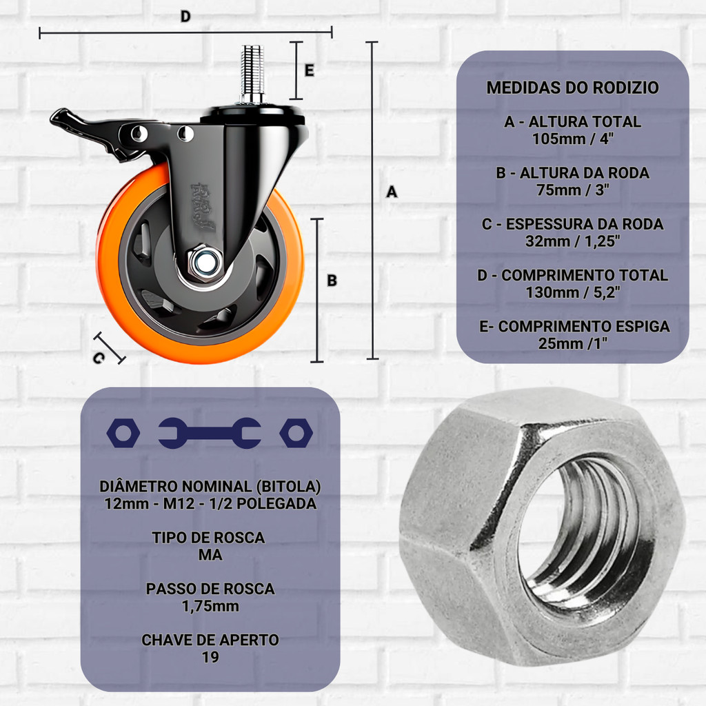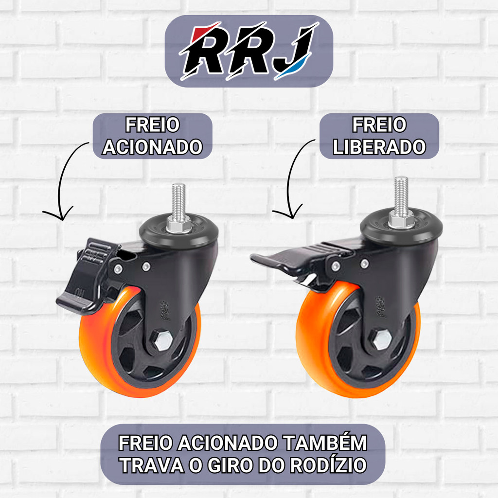 Kit 4 Rodinhas Para Moveis Com Espiga M12 Rodízio Roda Giratória Com Trava Sem Trava 3 Polegadas Rrj