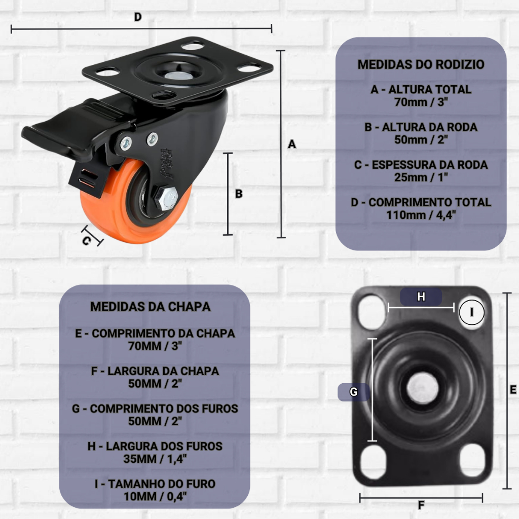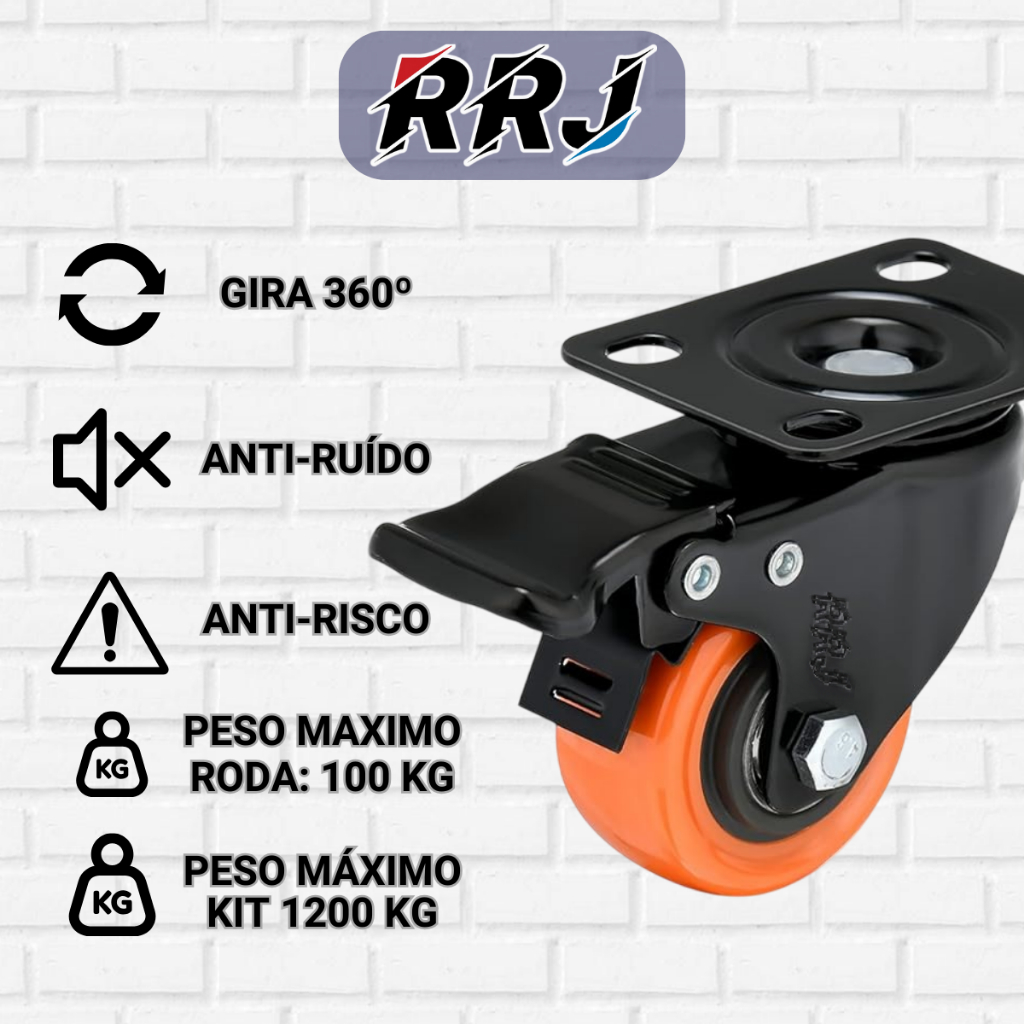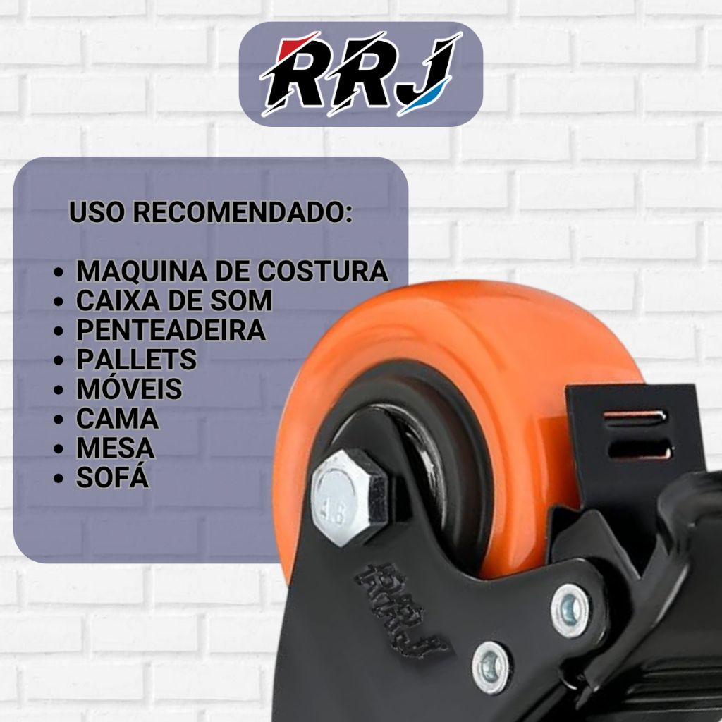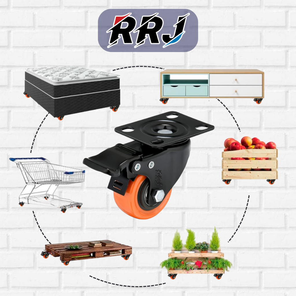 Kit 12 Rodízios Rodas Giratorias Reforçada para Moveis Pesados com Trava Rodinhas 50mm 2" Marca RRJ