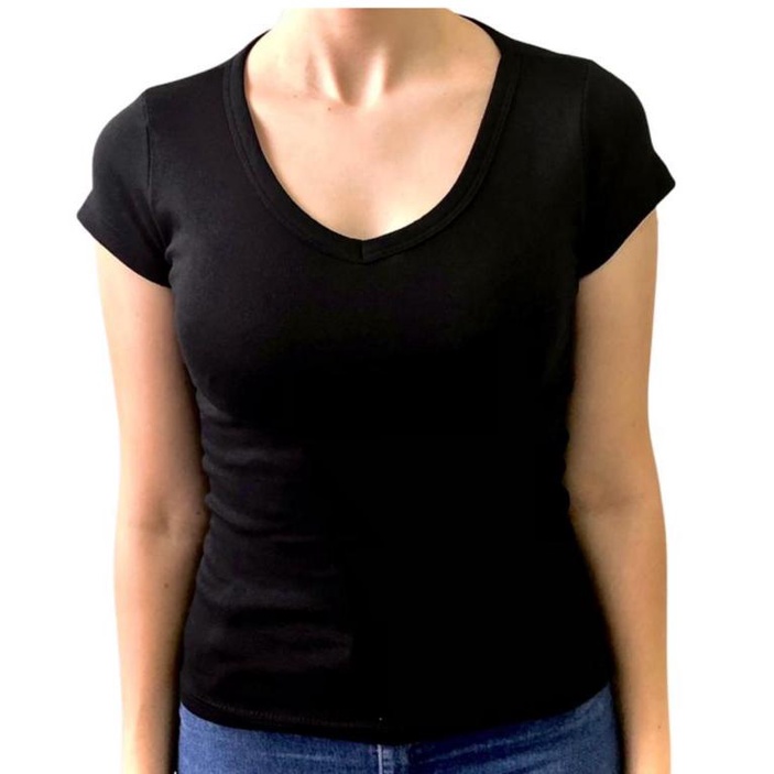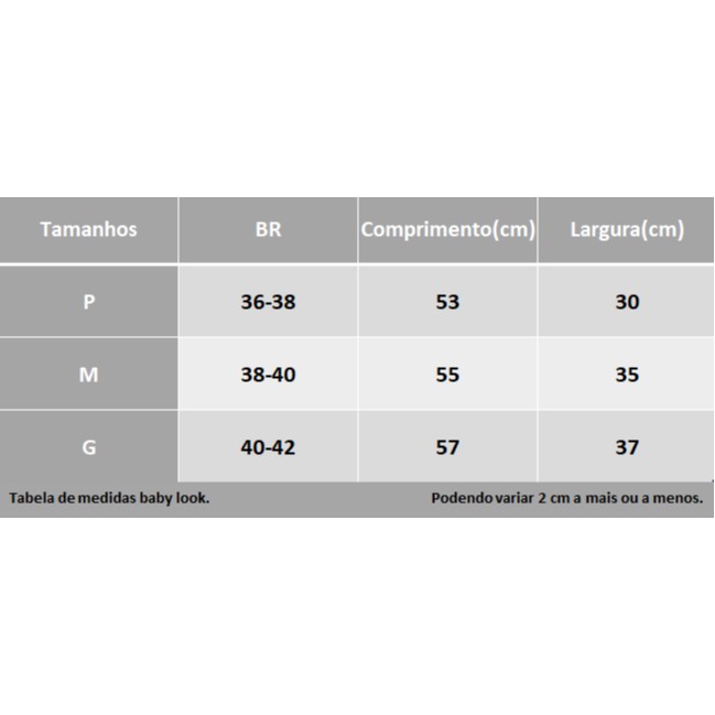 Blusa baby look GOLA V MESCLA 96% algodão 4% elastano.