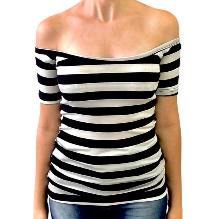 Blusa manga curta ombro a ombro LISTRADA 96% algodão 4% elastano