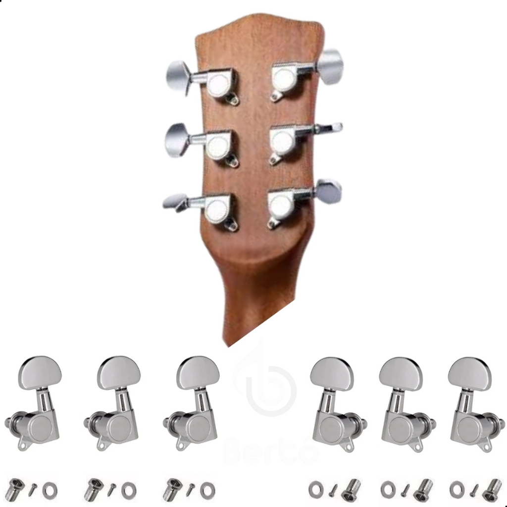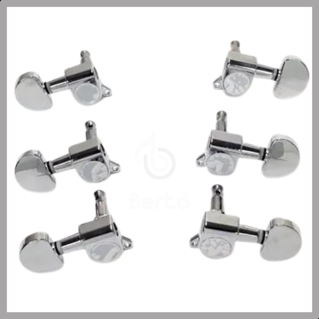 Jogo De Tarraxas Tarrachas Bertô 3 + 3 De Aço Cromada Blindada Para Violão E Guitarra Original
