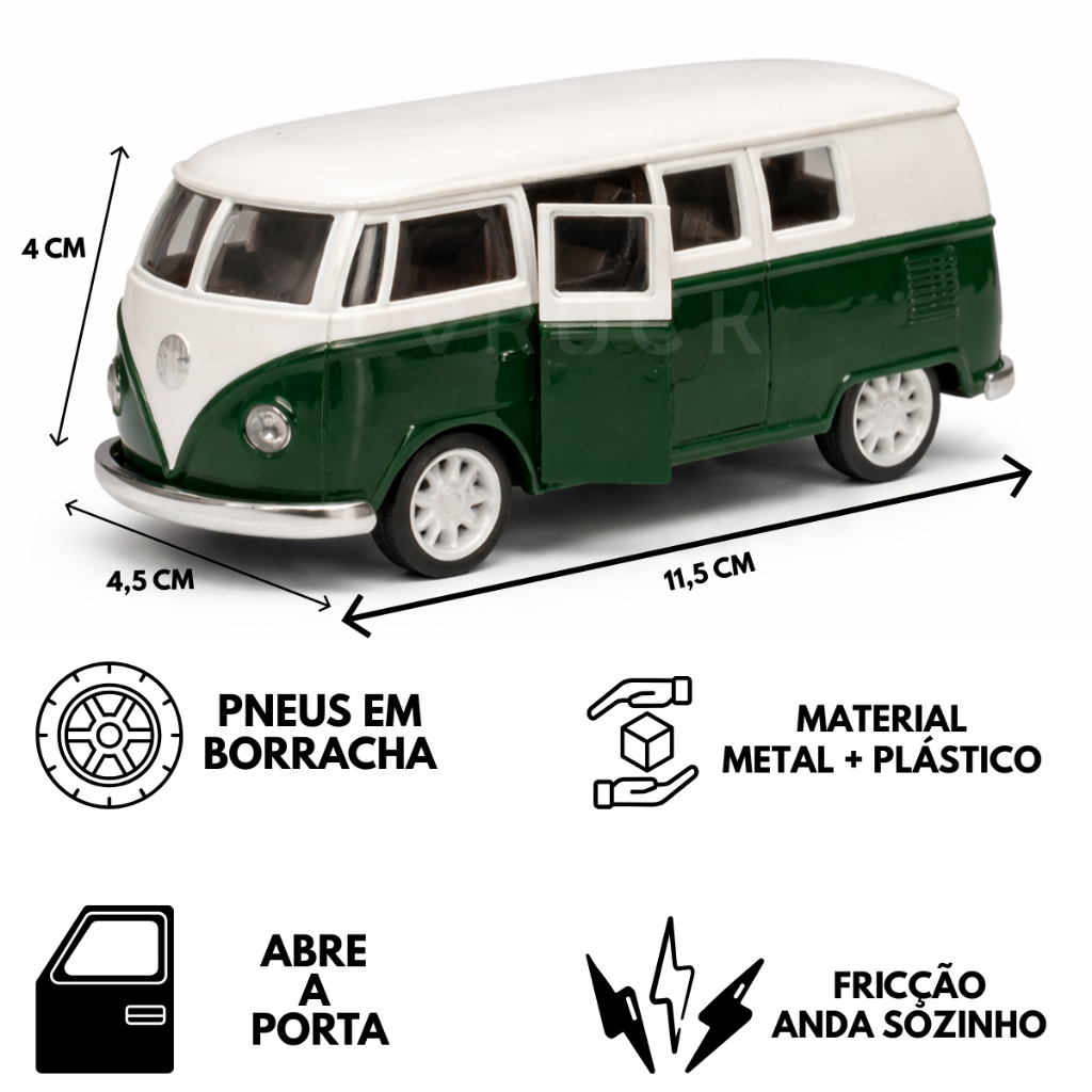 kit 1/2/4 Kombi Miniatura Perua Carrinho Colecionador Abre Porta Fricção de Ferro