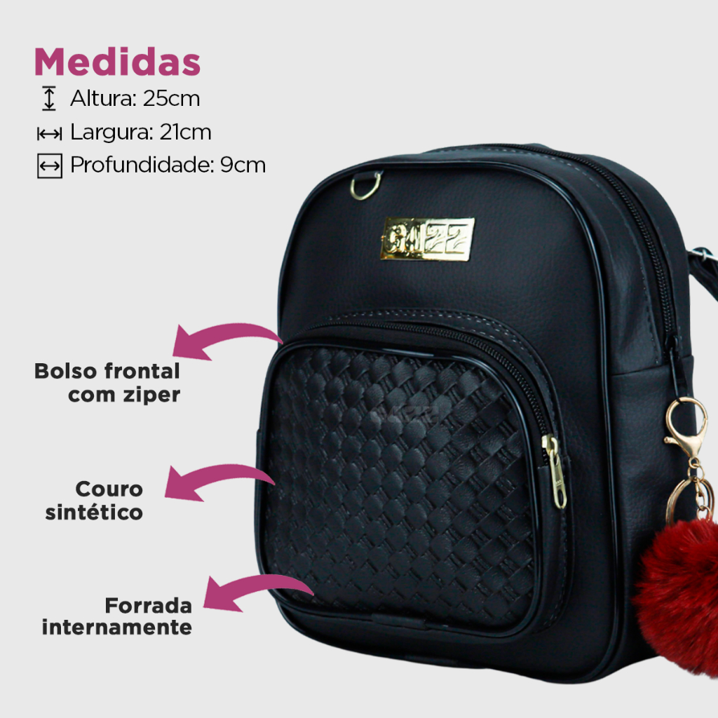 Mini Mochila Feminina Pequena Mochilinha De Costas Dia Dia Com Pompom