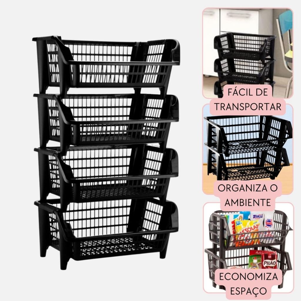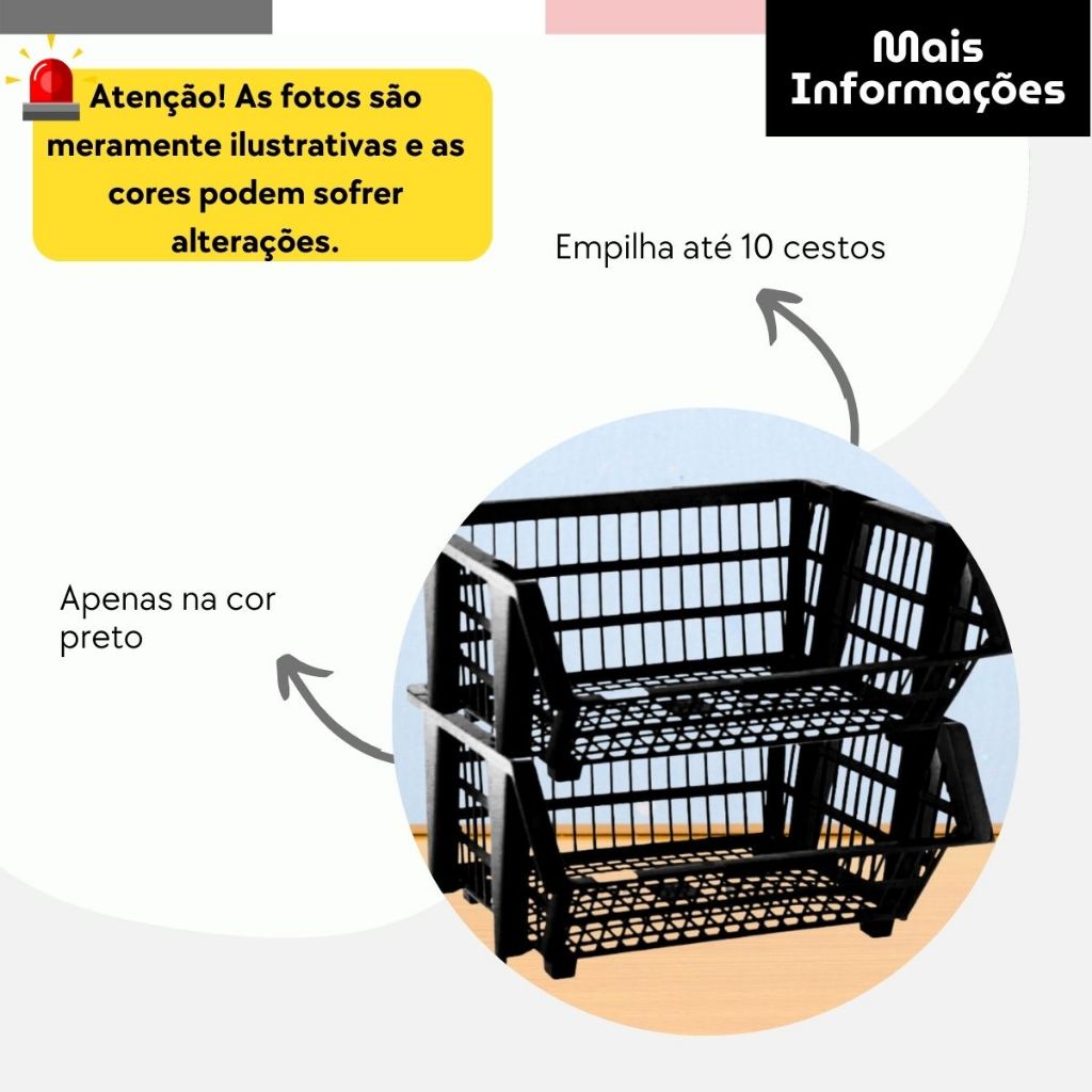 Kit Cesto Cestao Empilhavel 2/4/6 Preto Expositor Reforçado Organizador Estoque Dispensa Loja 20x44c