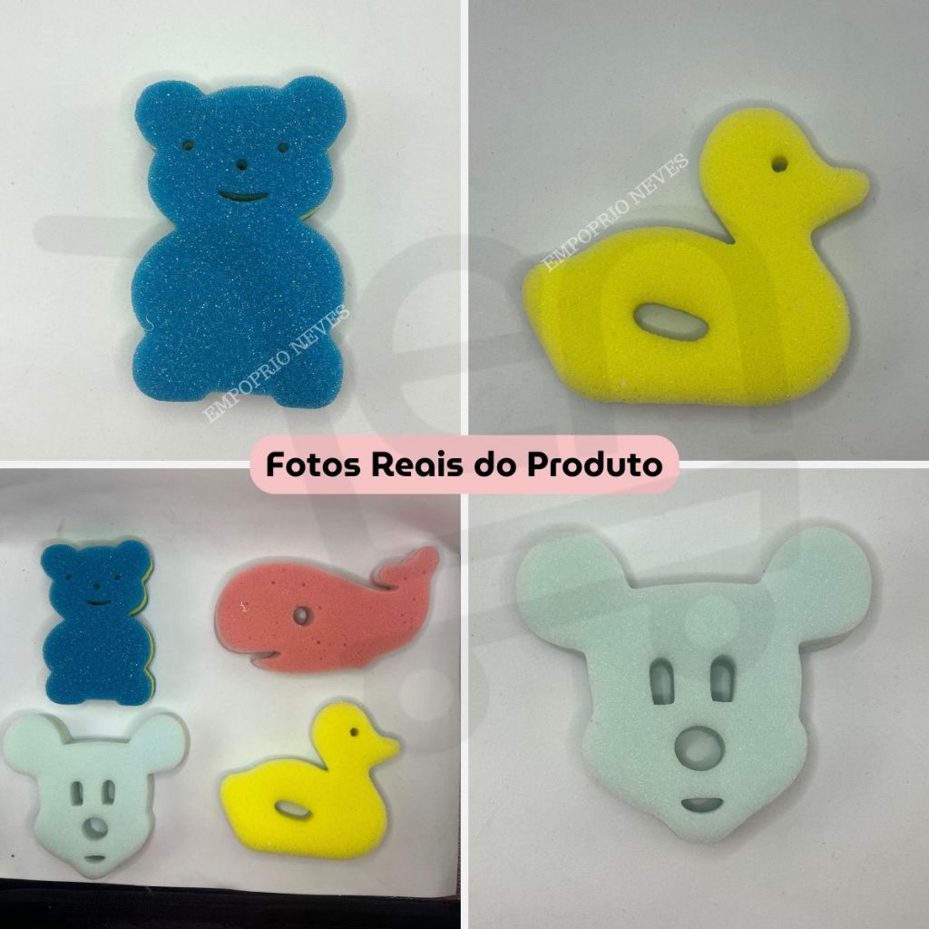 Kit 4 Bucha Esponja De Banho Infantil Bebe Divertida Macia Personagens Animal Sortidos