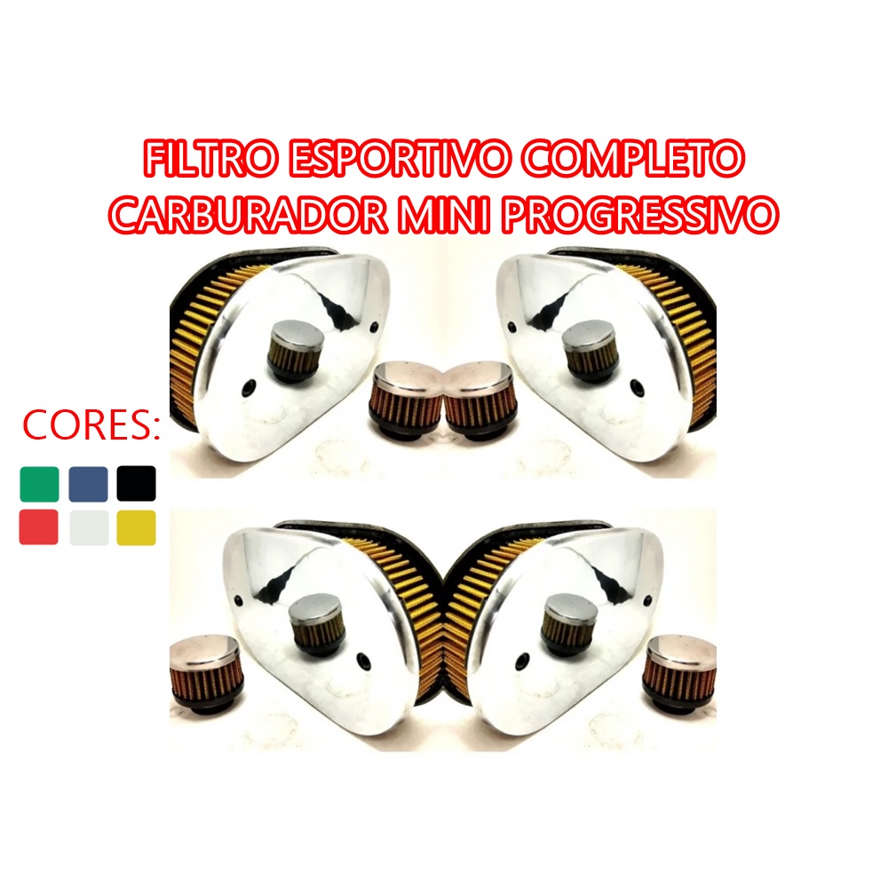 Filtro Esportivo Carburador Mini Progressivo C/ Respiro Pto