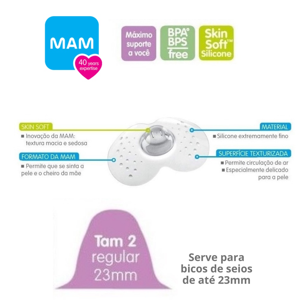 Protetor De Seios Mam 2un Regular ou Grande Bico Intermediario para Seio Rachado com Estojo