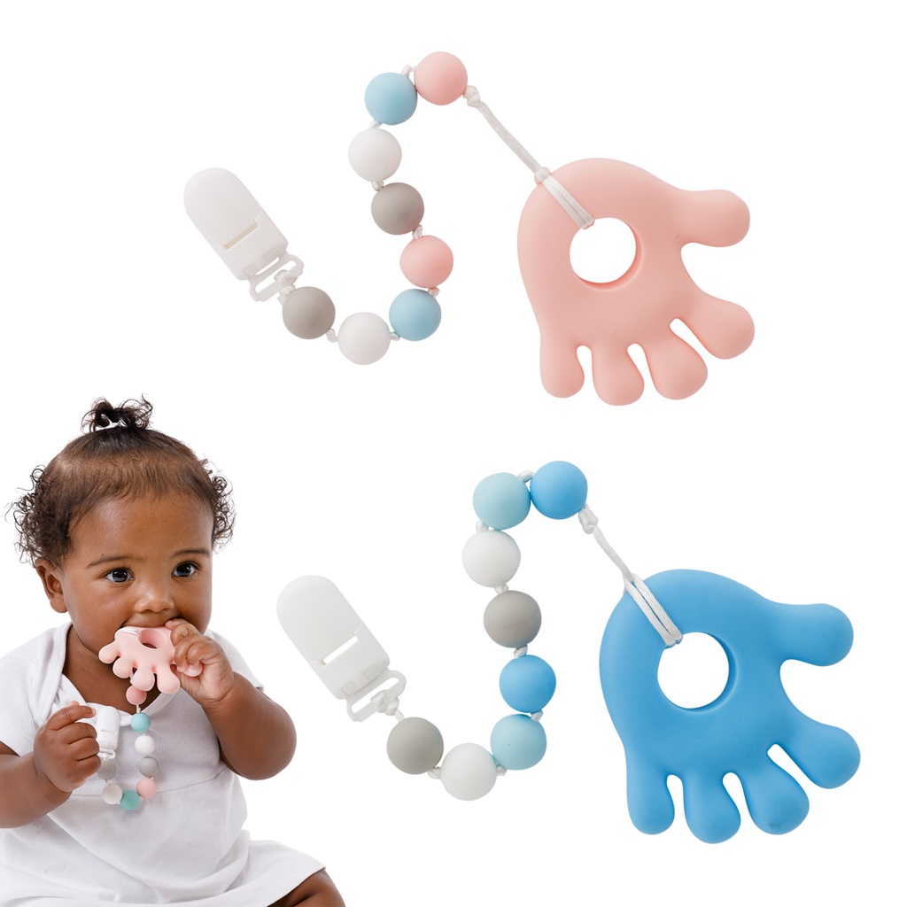 Brinquedo Mordedor de Mãozinha com Prendedor Brinquedos de Menina Brinquedos de Menino em Silicone Macio