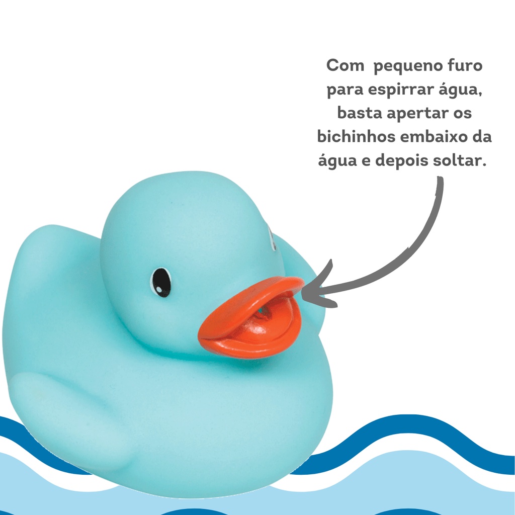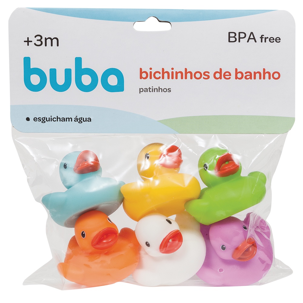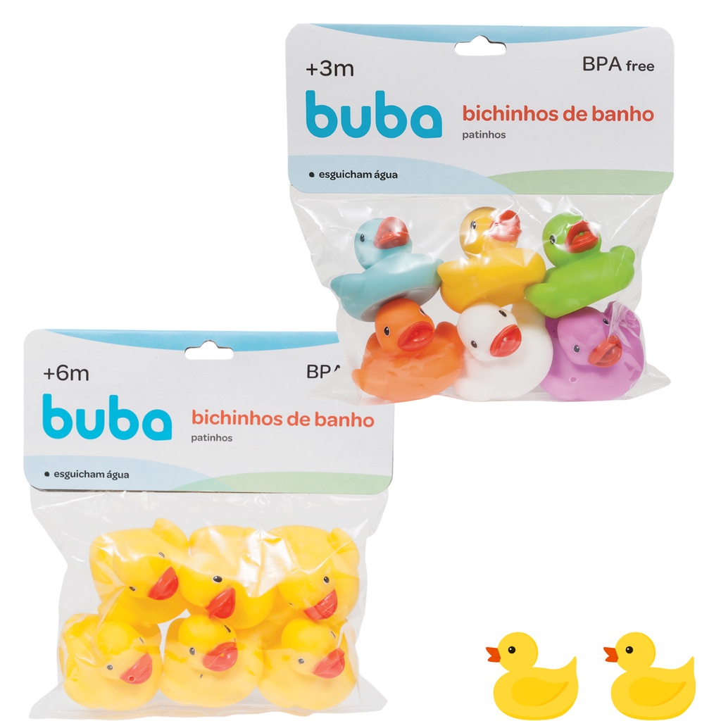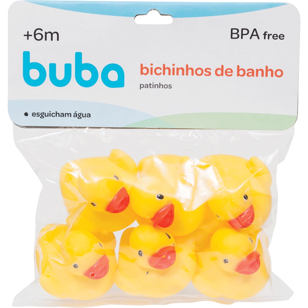 Kit 6 Patinhos Para Banho Mordedor De Borracha Para Bebê Buba