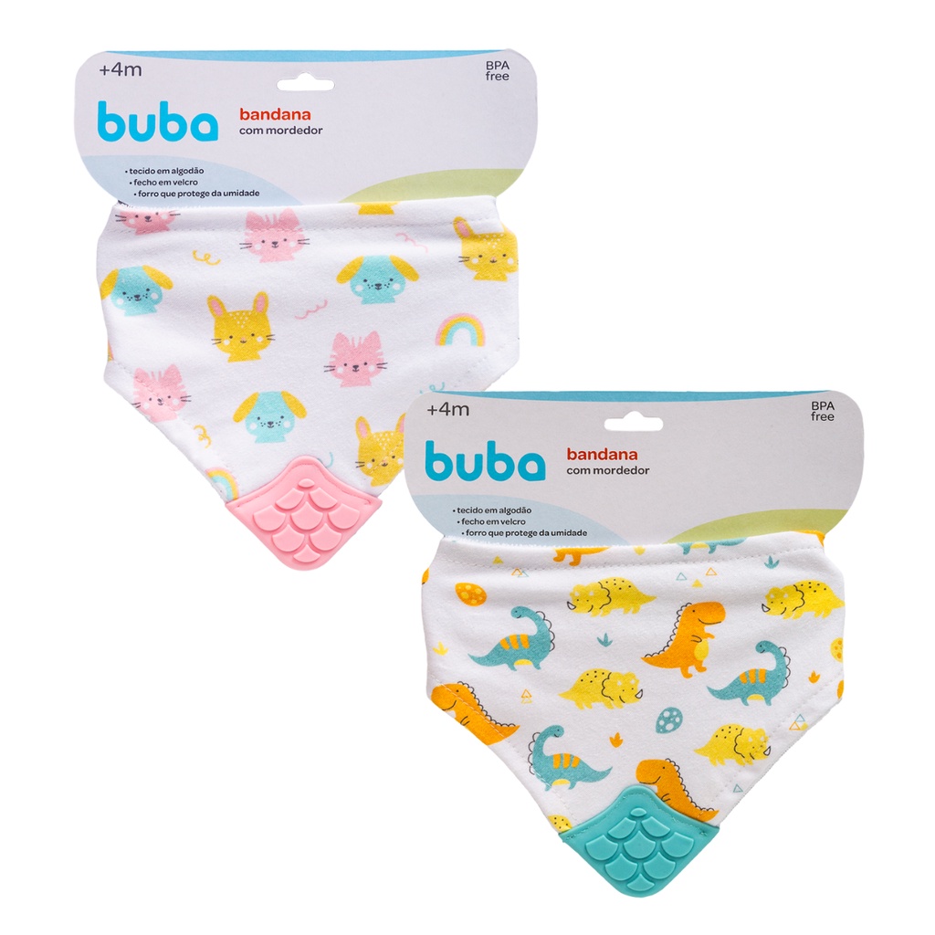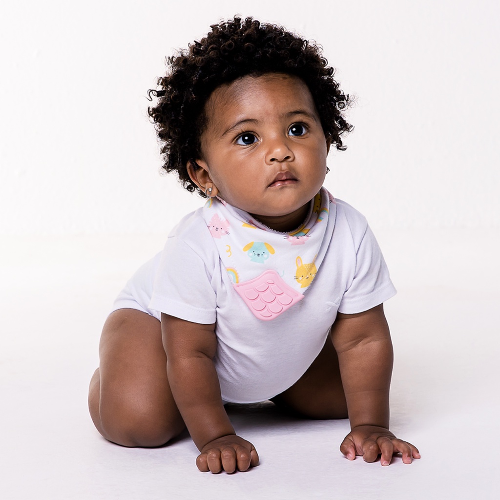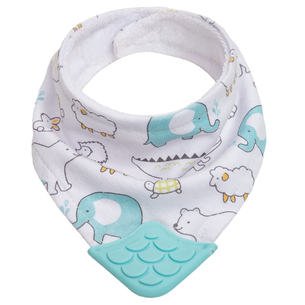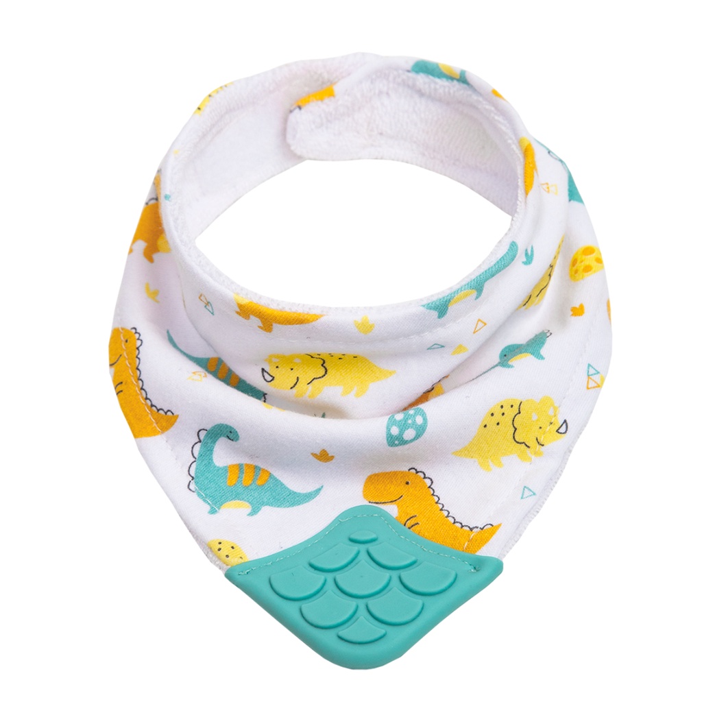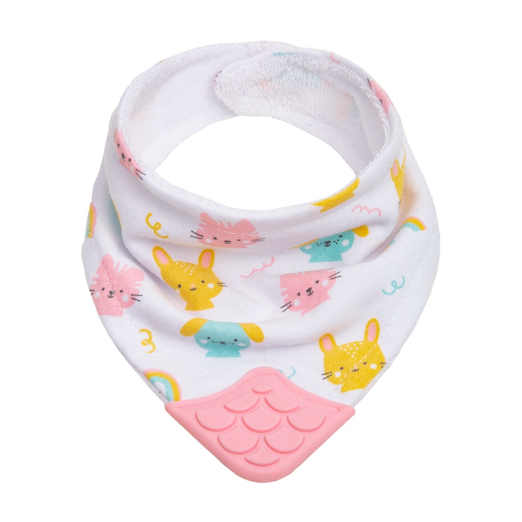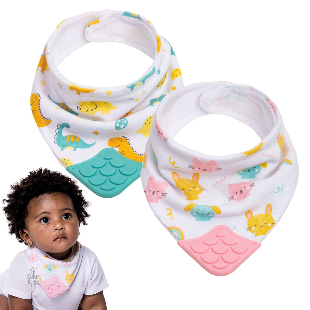Babador Bandana com Mordedor Ajustável Tecido Algodão Atoalhado por Dentro Massageador de Gengiva