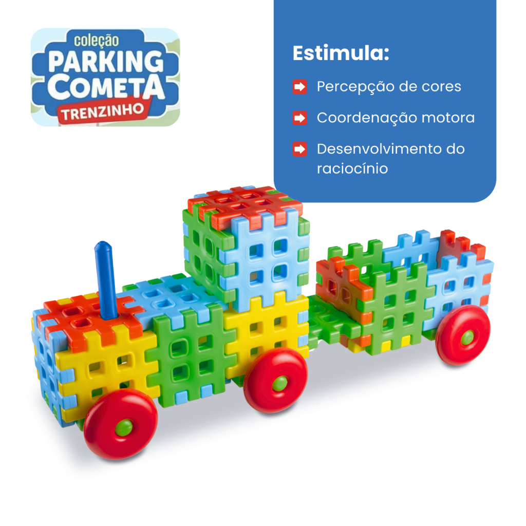 Brinquedo Educativo Trenzinho com Rodinhas Blocos Resistente Peças Casa Montar Encaixar Construir