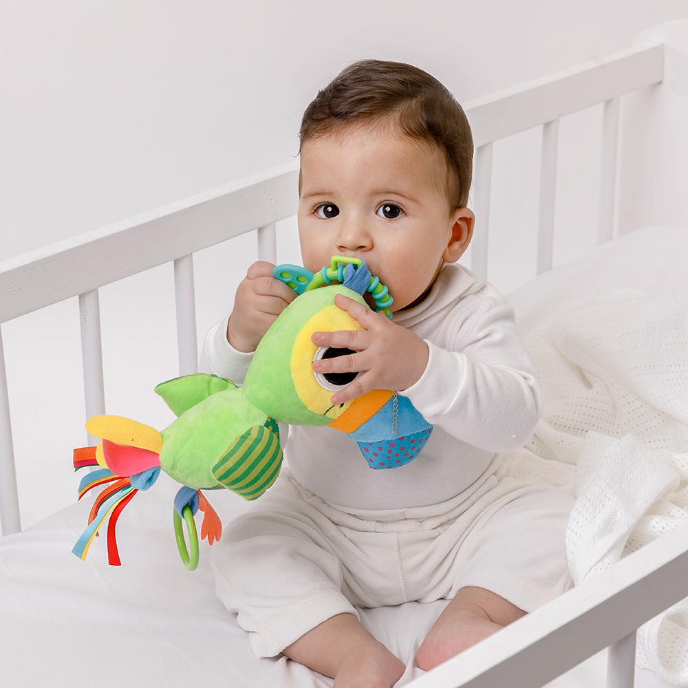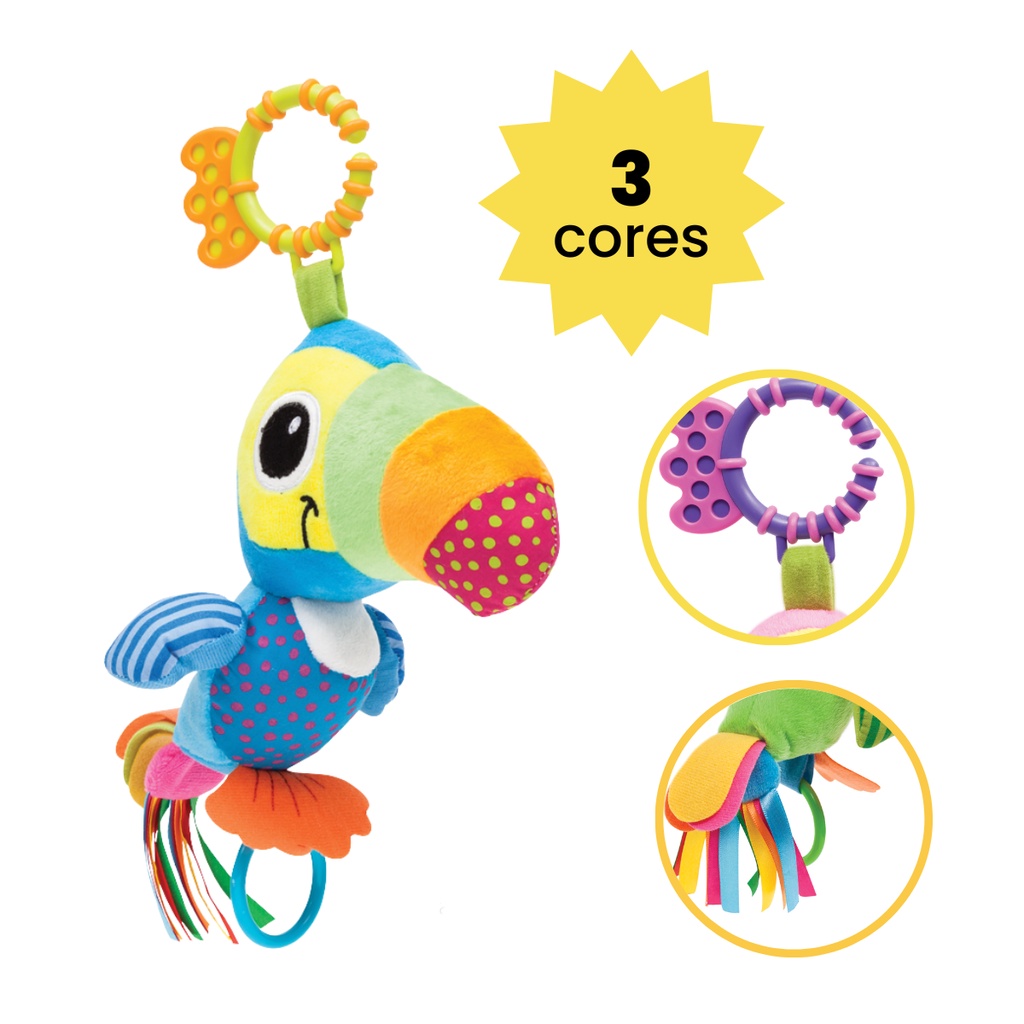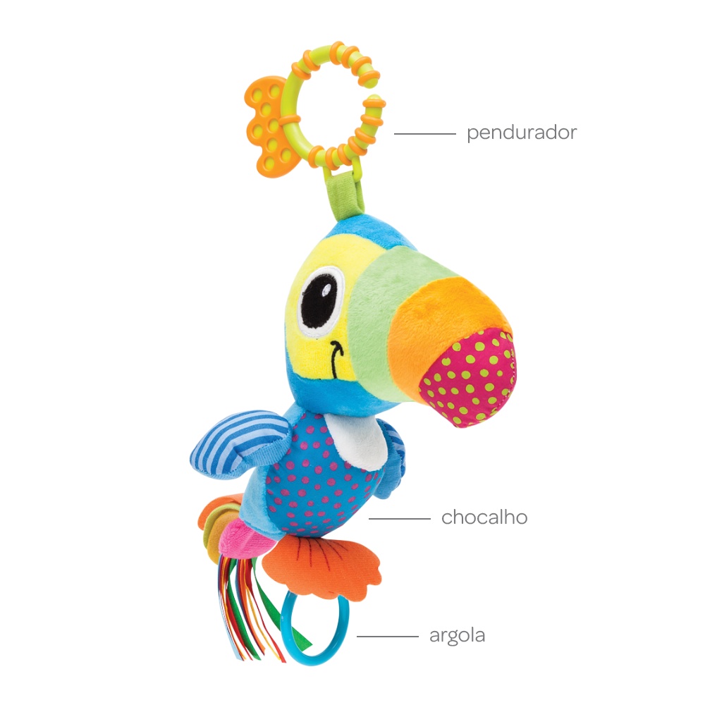 Brinquedo Chocalho Atividades Bebe RN Móbile Pelúcia Tucano Zuzu Safari