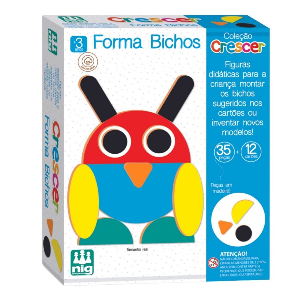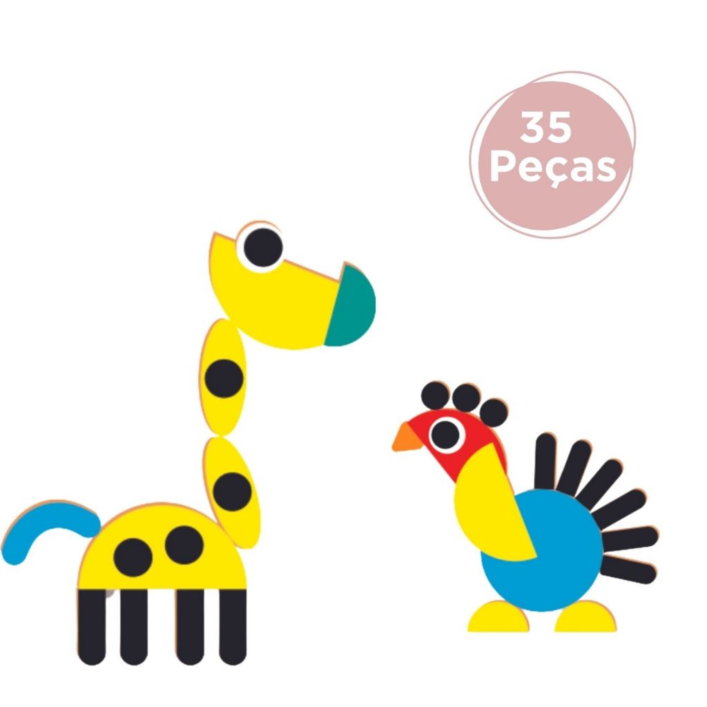 Brinquedo Educativo de Madeira Infantil Animais Forma Bicho 35 Peças Educação Infantil