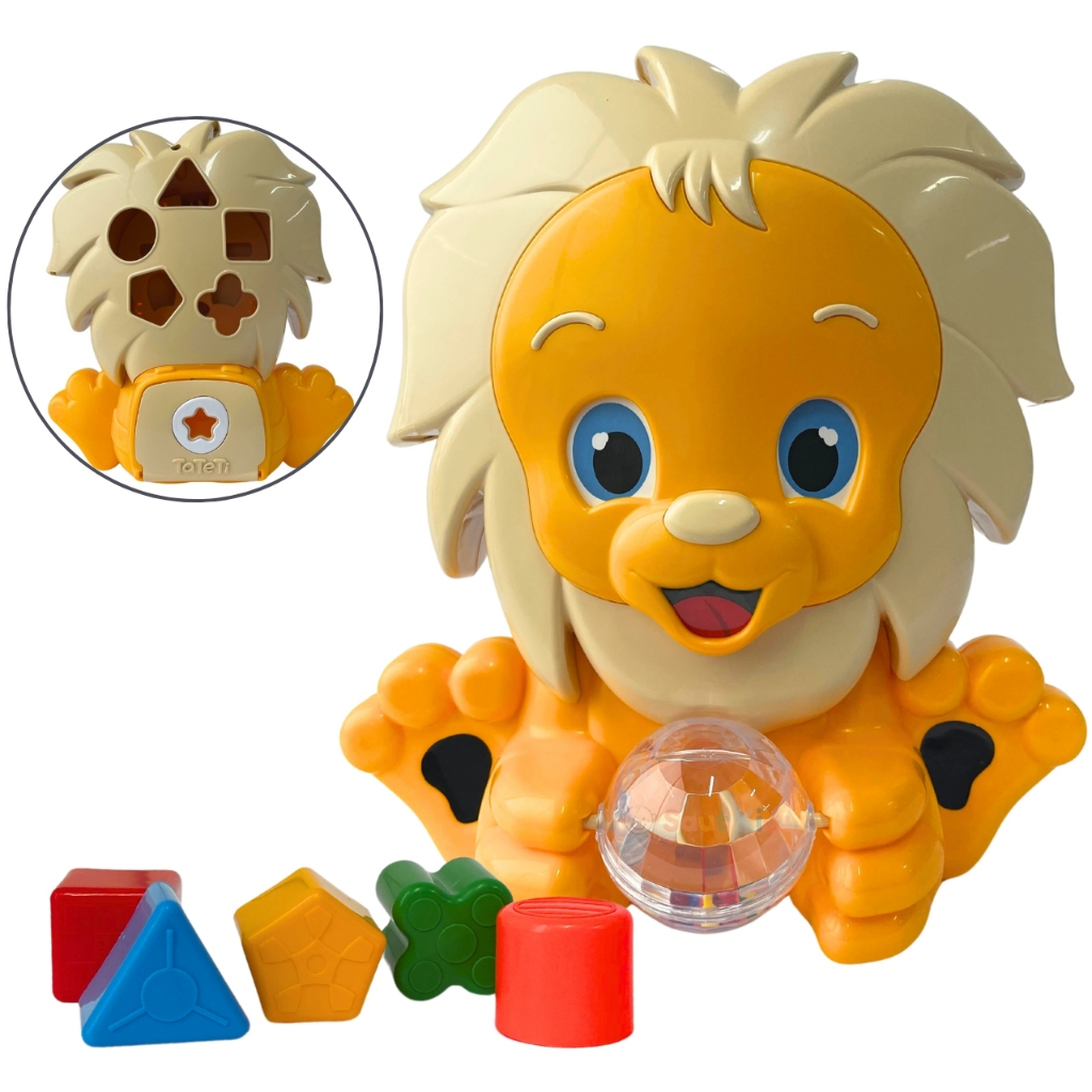 Brinquedo Amigo Leão Com Formas De Encaixar Chocalho Para Bebê Giratório Peças Geométricas Coloridas Educativos Infantil