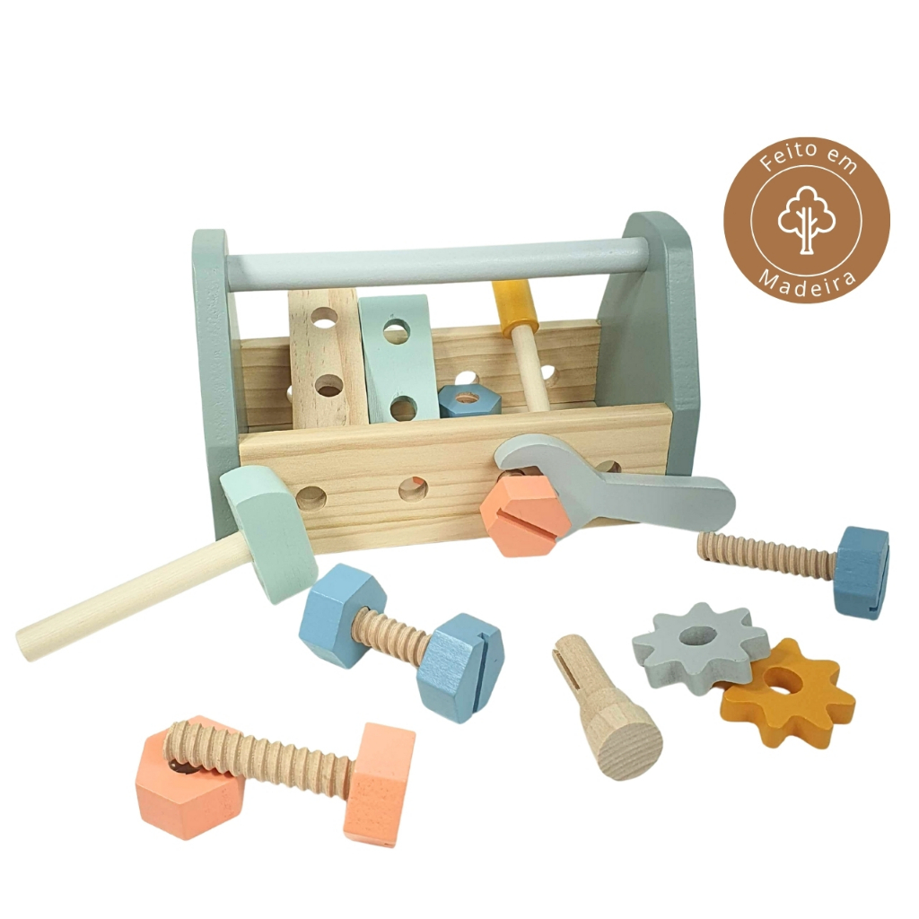 Brinquedo para Menino de Madeira Caixa de Ferramentas Infantil Brinquedo Educativo Coordenação Motora
