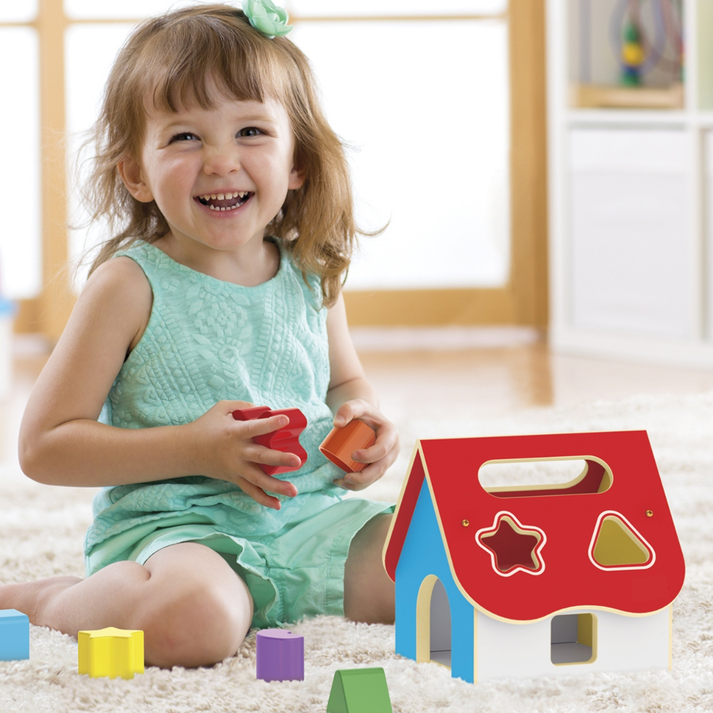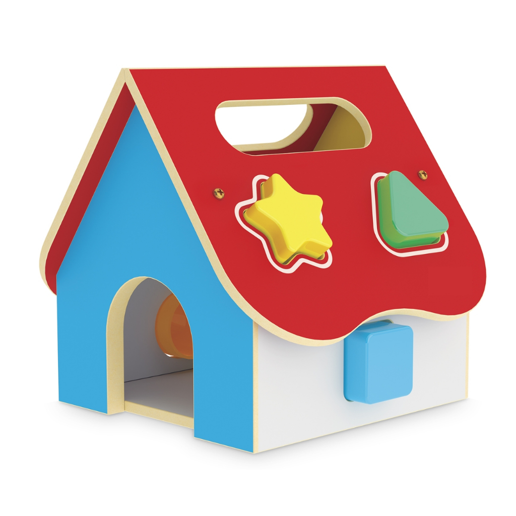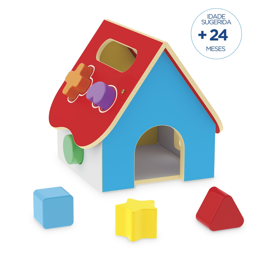 Casinha de Encaixe de Madeira Brinquedo para Bebê Educativo Montessori de Madeira