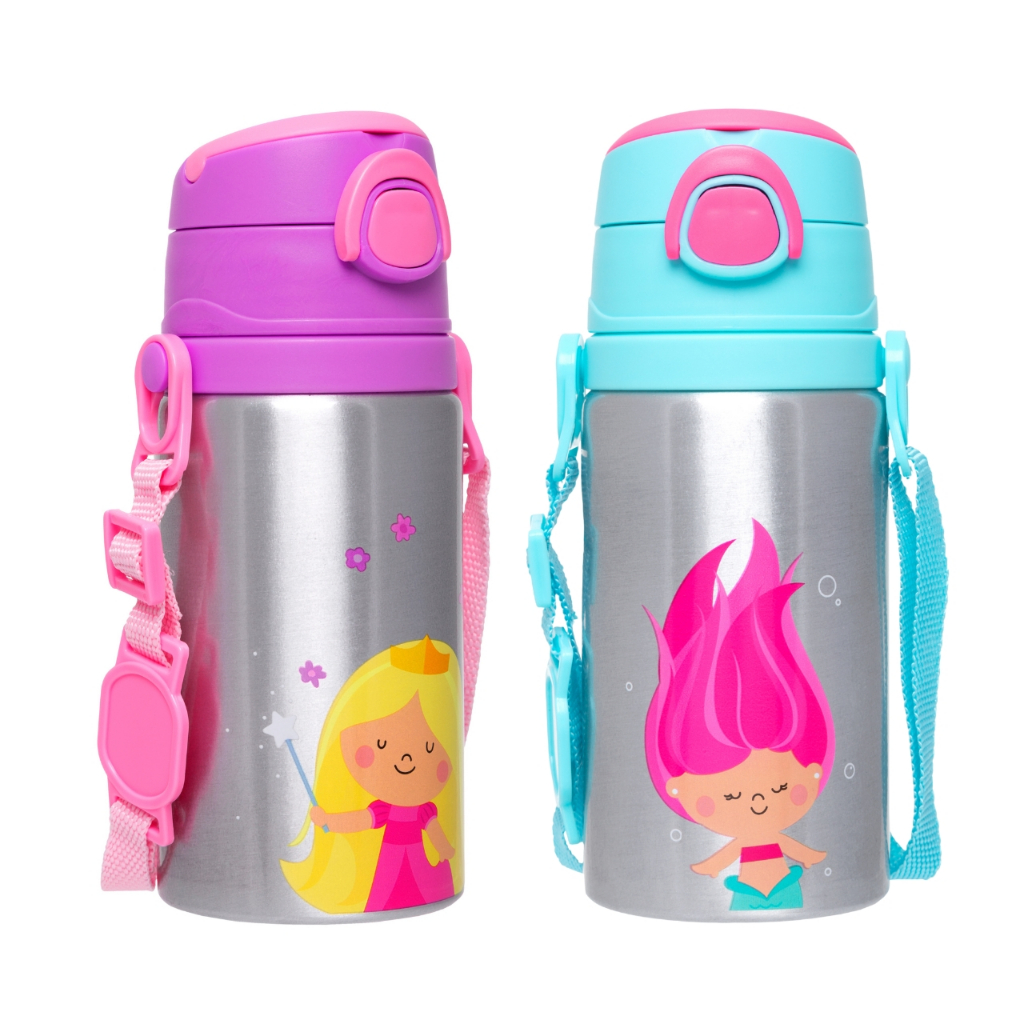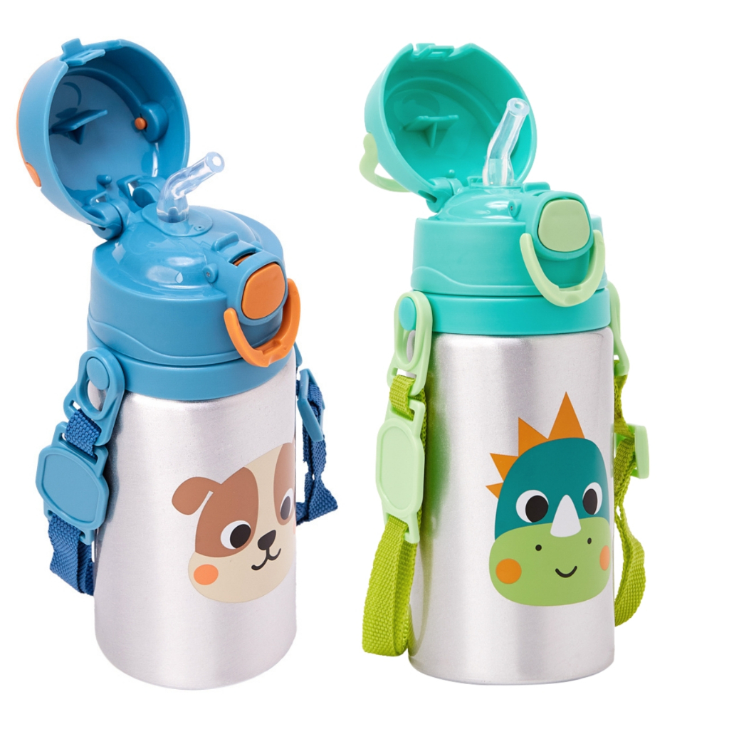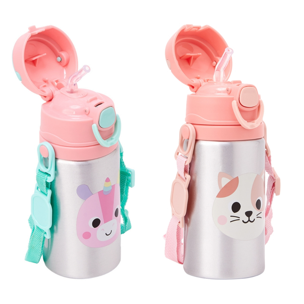 Garrafa de Água Infantil Alumínio Buba Canudo Retrátil Garrafinha Infantil Resistente Escolar Verão
