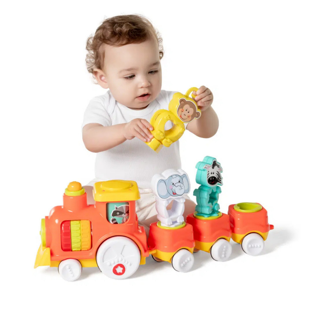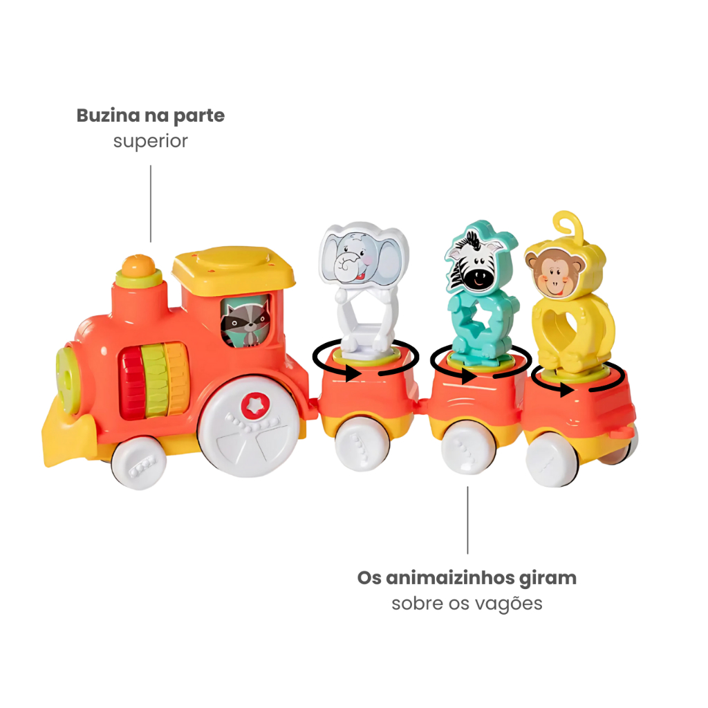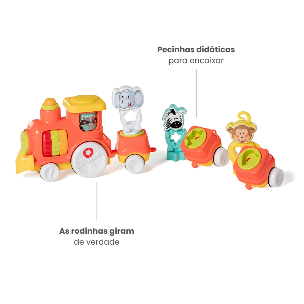 Brinquedo Trenzinho Infantil com Som Brinquedo Pedagógico Menino e Menina Formas Animais