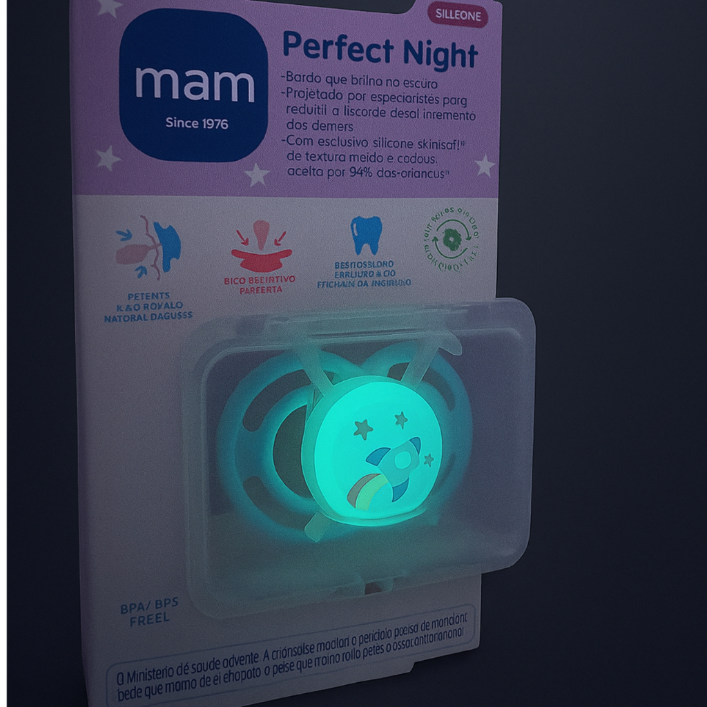 Chupeta MAM Perfect Night 6+ Meses Unitária Menino Menina Bico de Silicone Brilha no Escuro