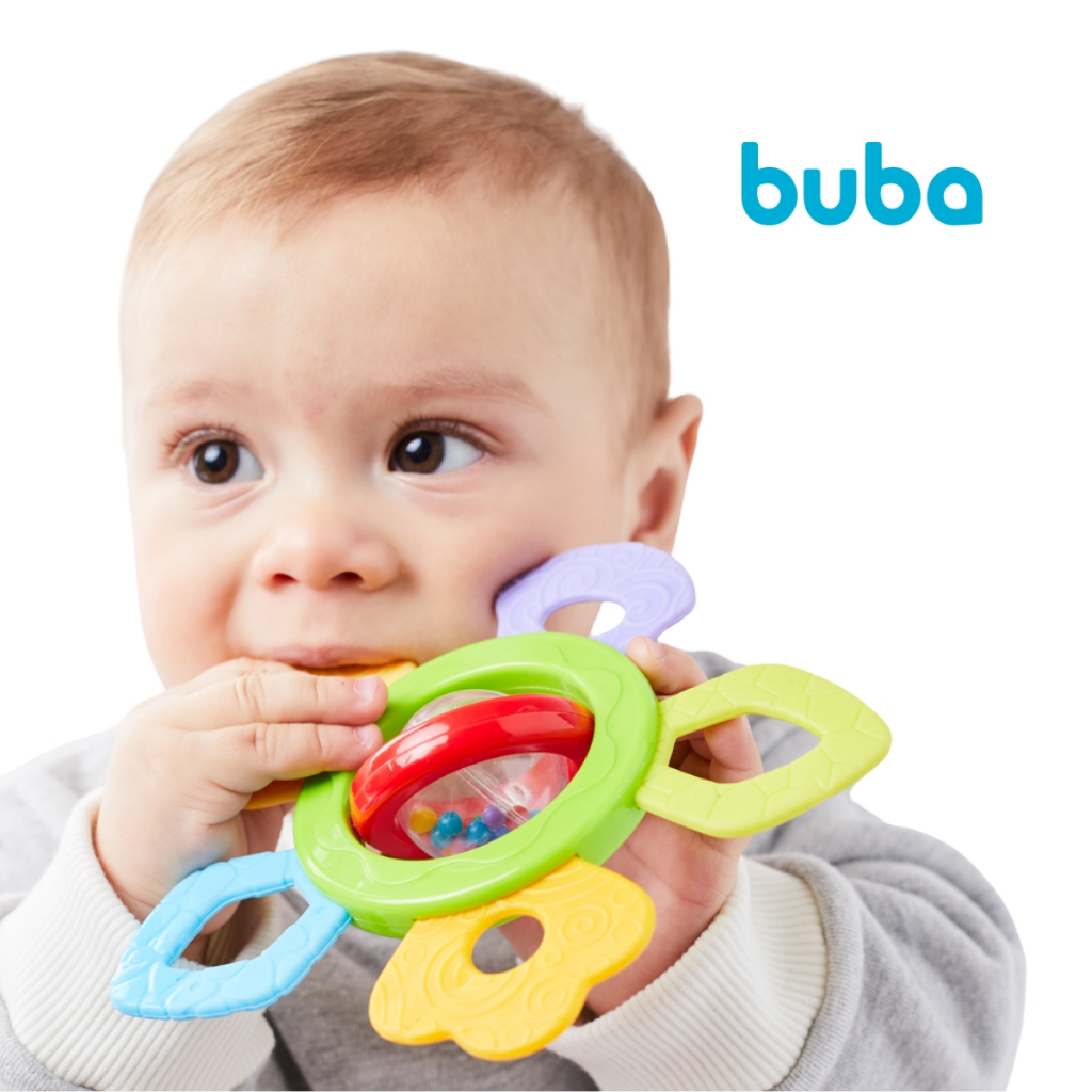 Brinquedo para Bebê Chocalho Mordedor em Silicone Bebe Brinquedos Infantil Buba