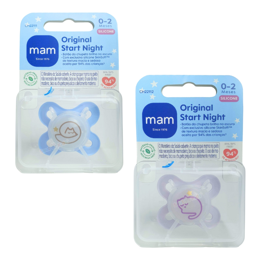 Chupeta MAM 0-2 meses Brilha no Escuro de Silicone Menino e Menina Chupeta Recém Nascido