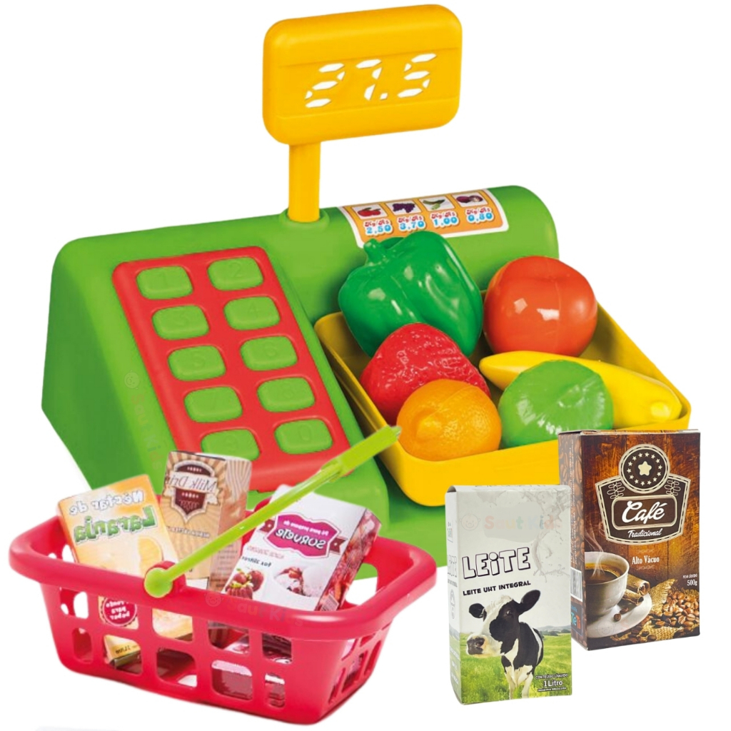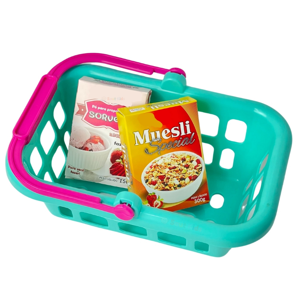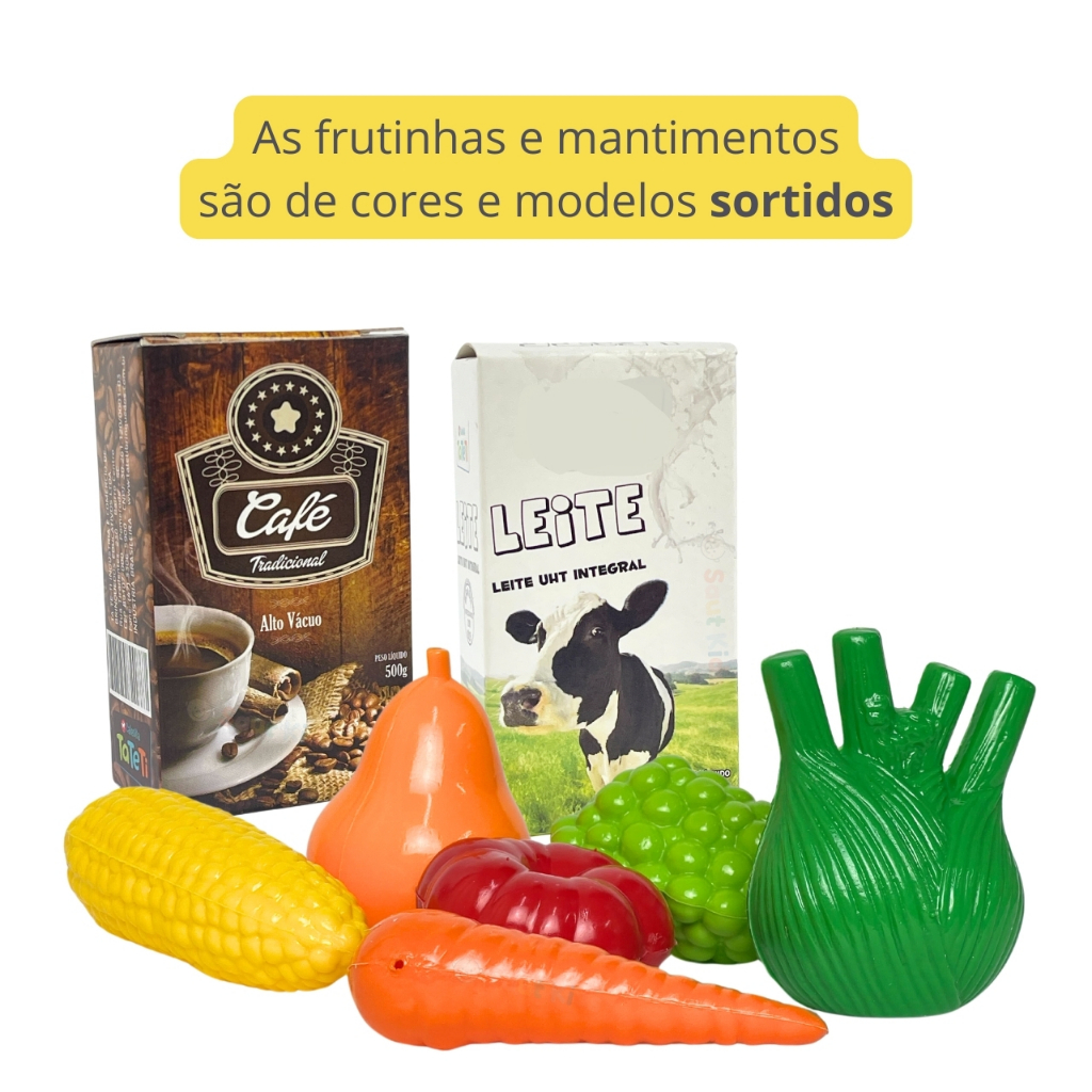 Kit Mercadinho Infantil Comidinha Brinquedo Educativo Balança E Cestinha Com Frutas e Comidinhas Menino E Menina