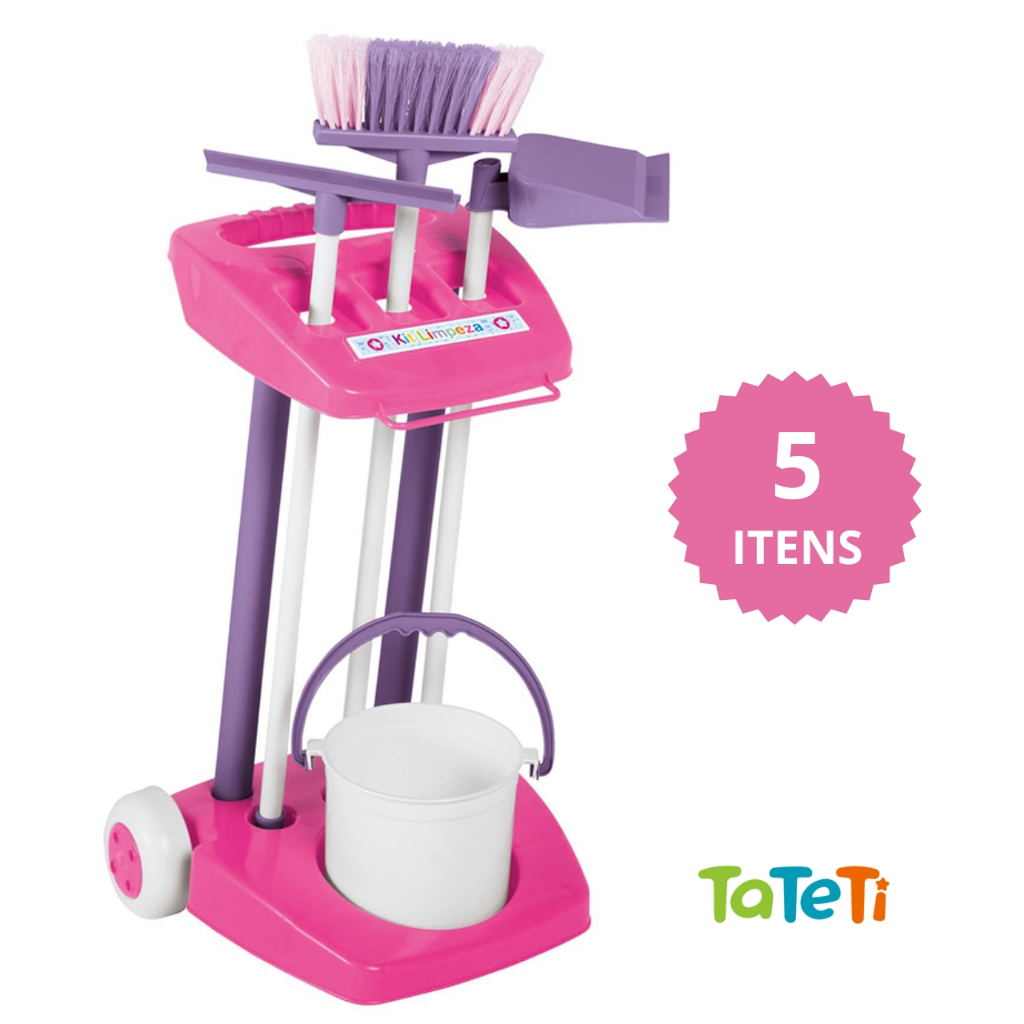 Brinquedo Kit de Limpeza Infantil Vassoura Pá Rodo Rosa Presente Criança Educativo Imaginação Menina