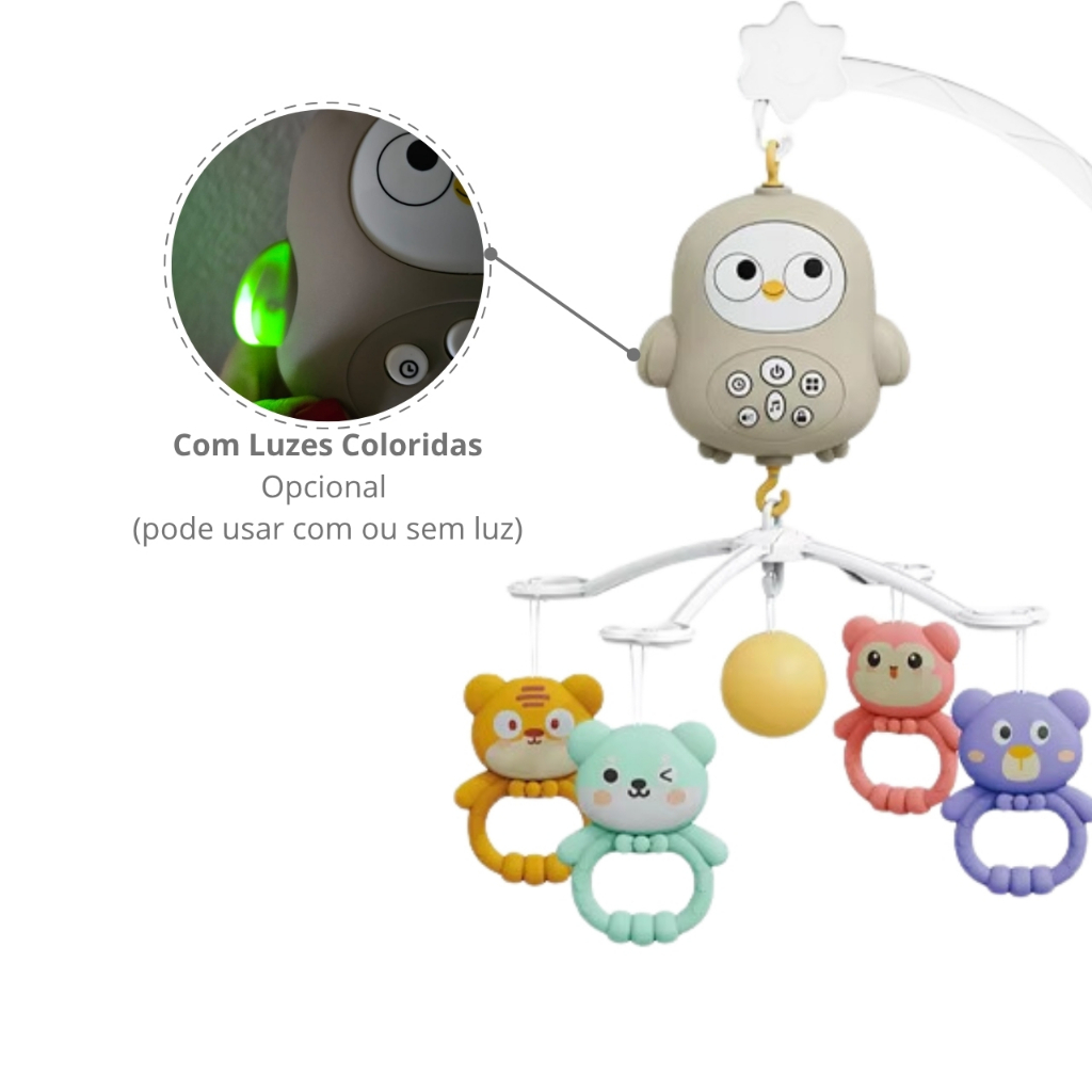Móbile Musical Giratório Para Berço de Bebê com Controle Remoto de Bichinhos