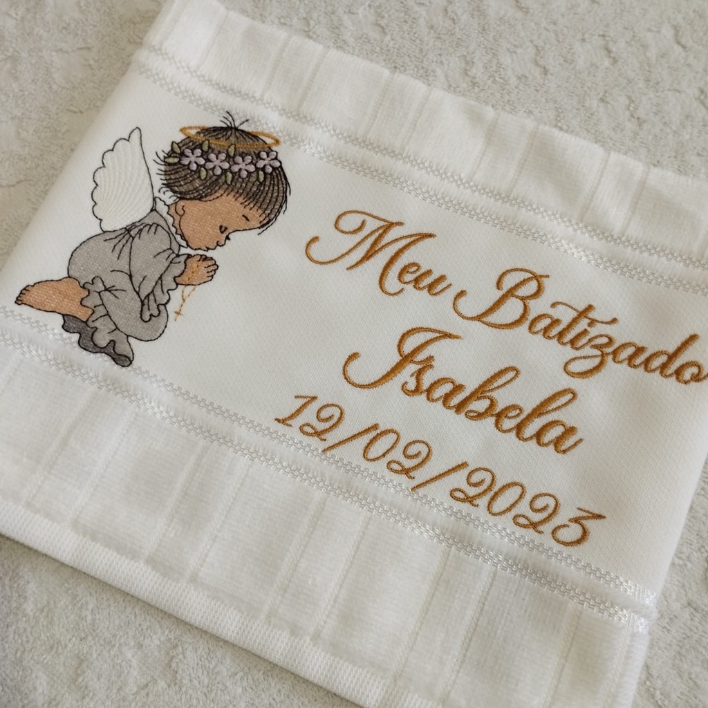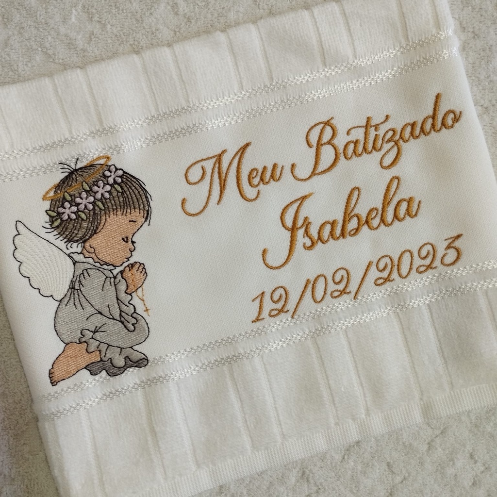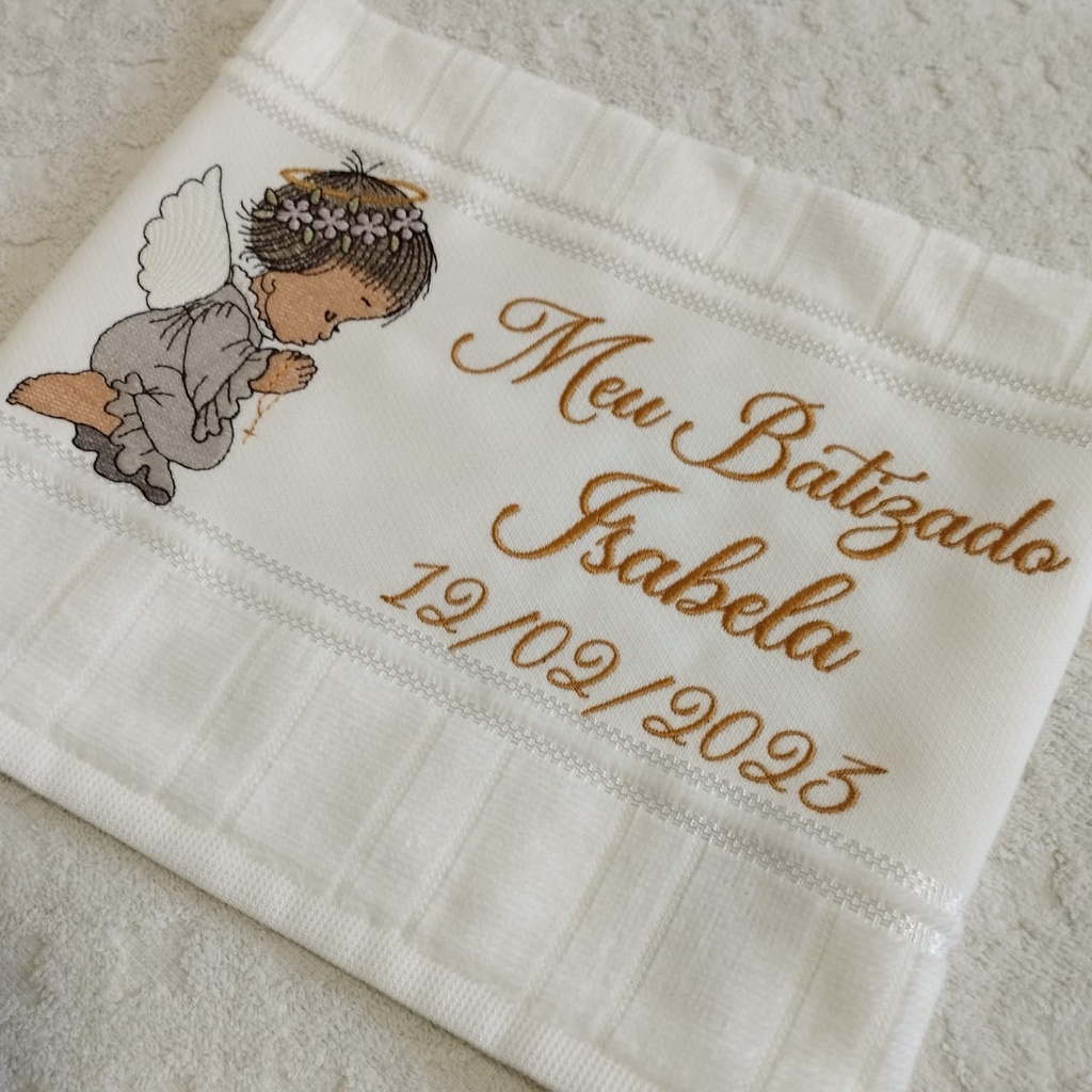 Toalha Toalhinha Infantil Branca Bordada Com Anjinha Para Batismo Batizado Personalizada Com Nome