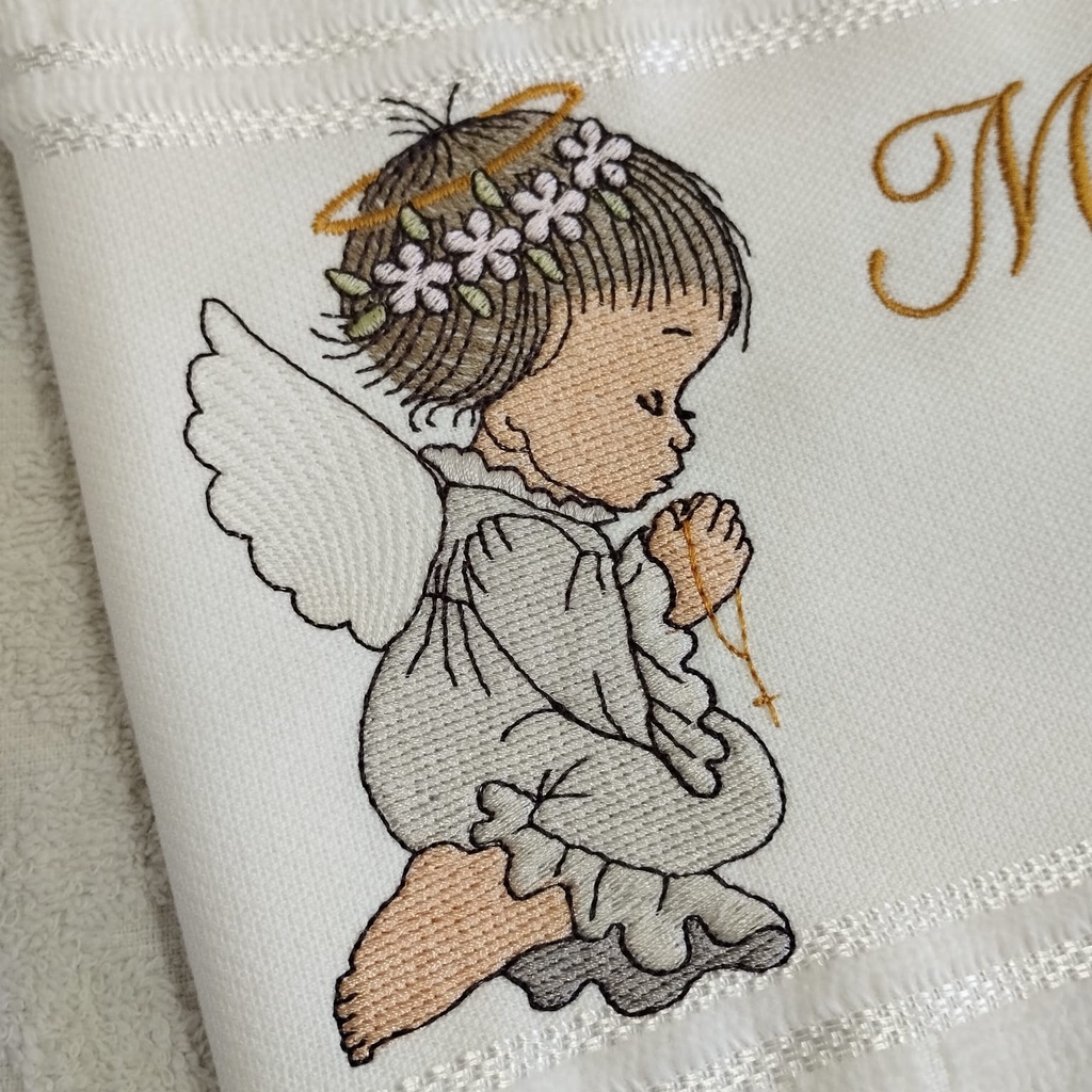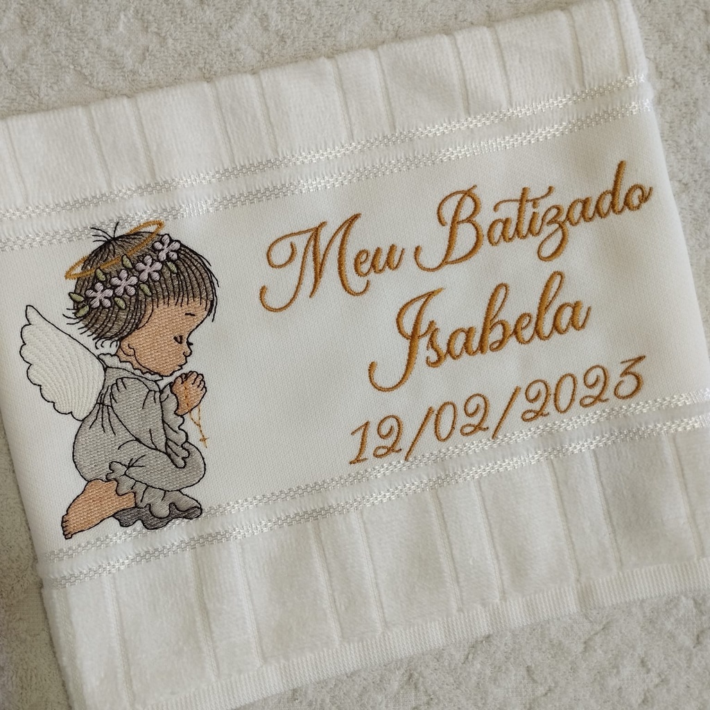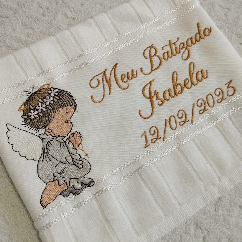 Toalha Toalhinha Infantil Branca Bordada Com Anjinha Para Batismo Batizado Personalizada Com Nome
