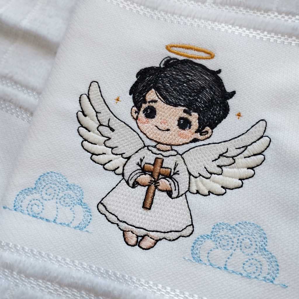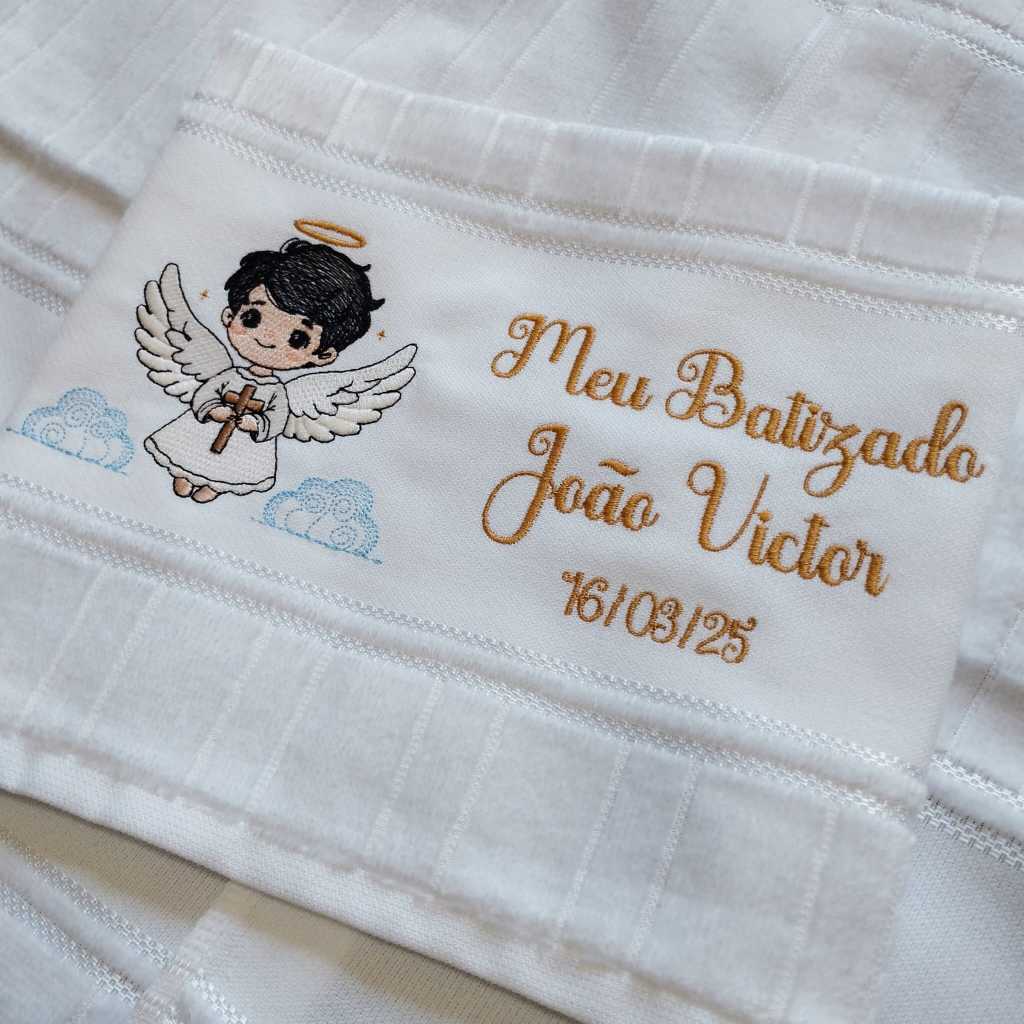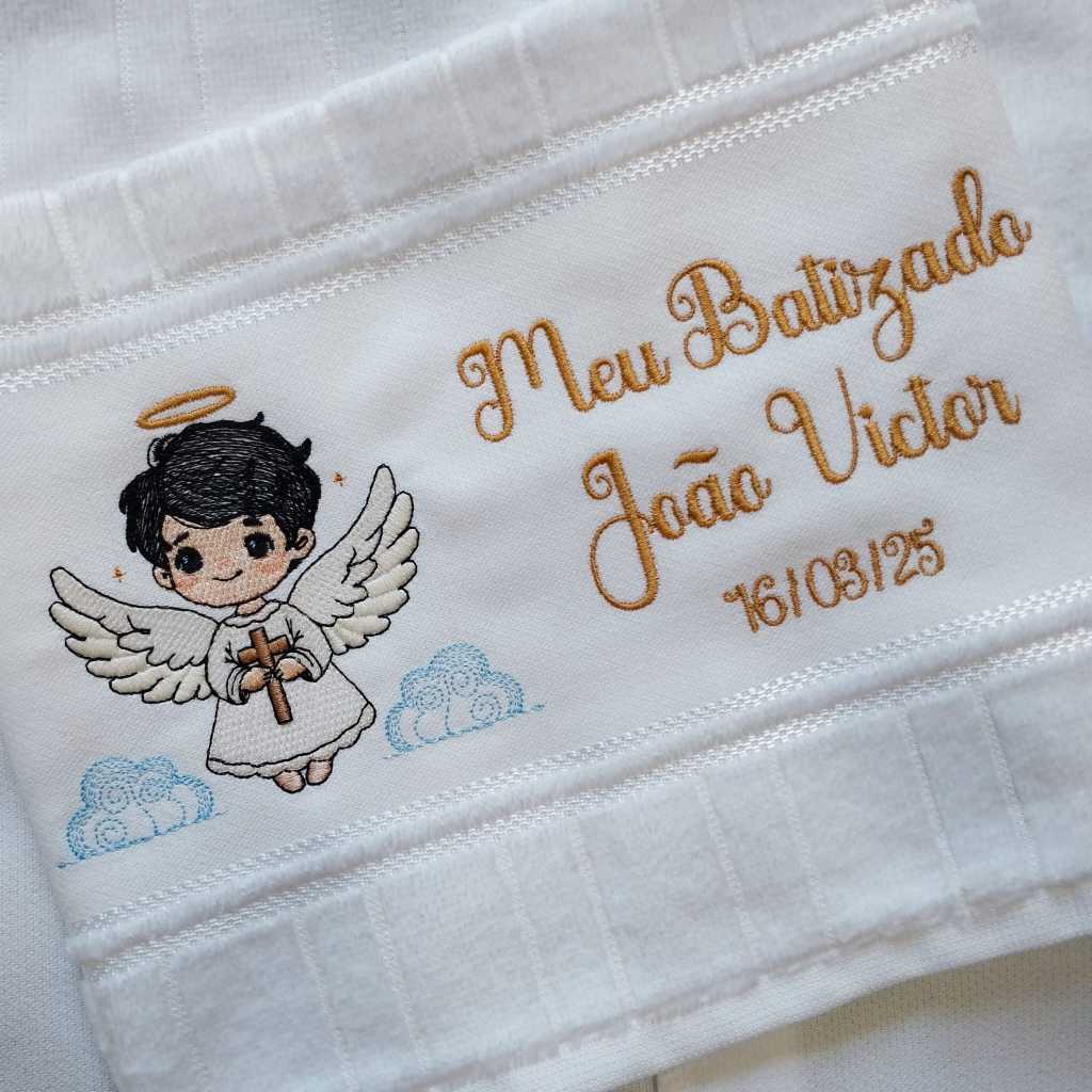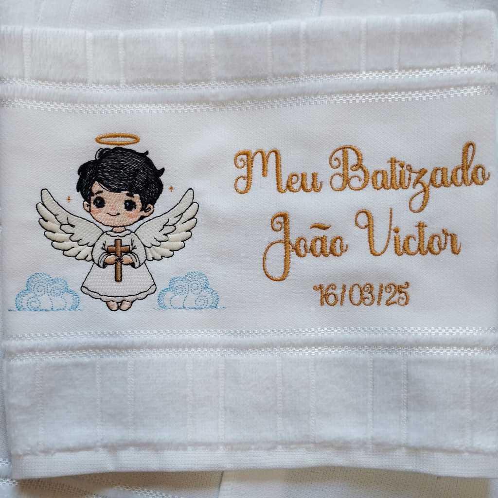 Toalha Toalhinha de Mão Branca Bordada Para Batizado Batismo Anjinho Personalizada Com Nome e Data
