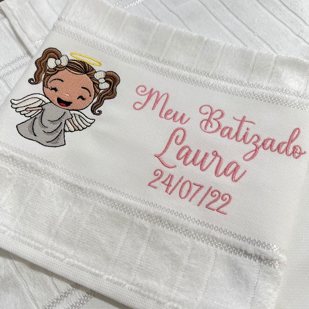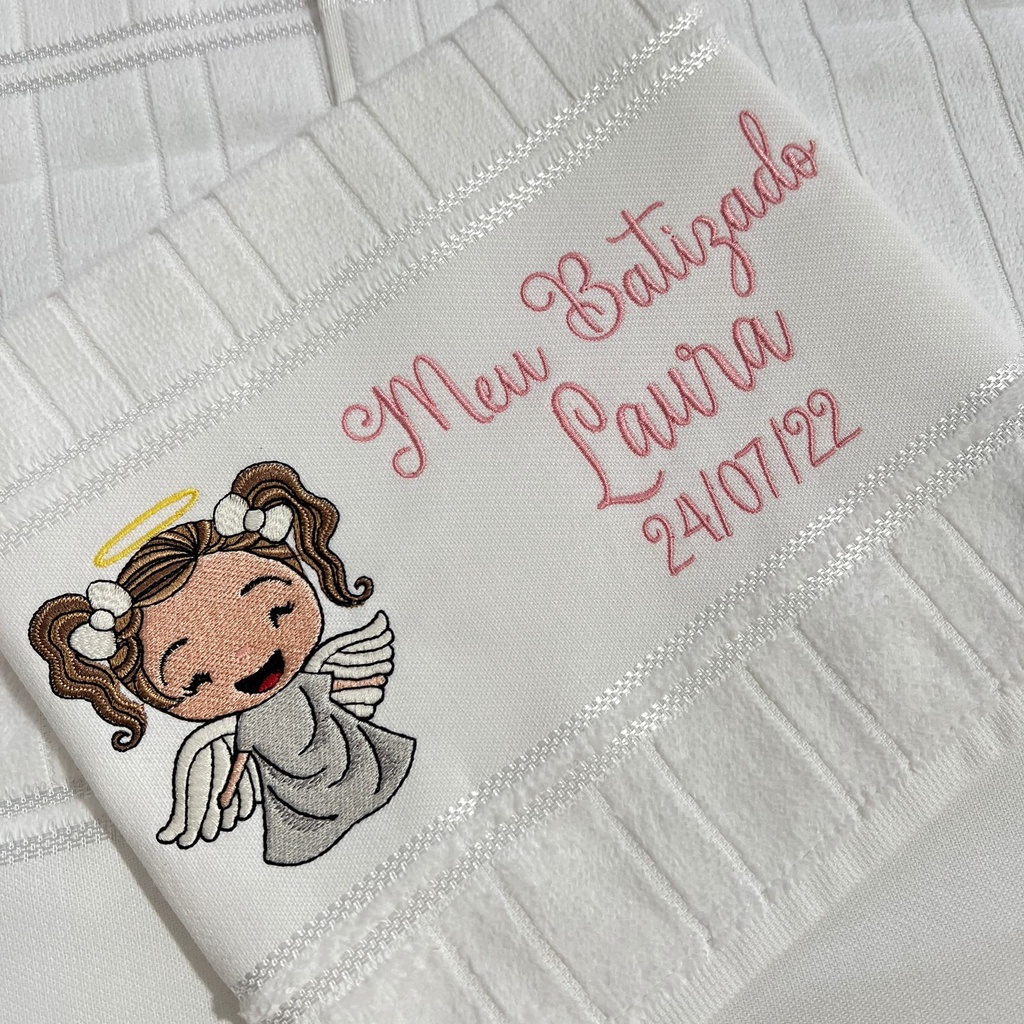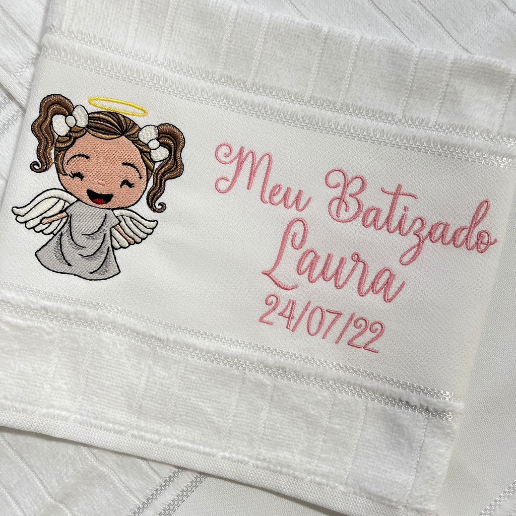 Toalha Toalhinha Branca de Mão Bordada Com Anjinha Para Batizado Personalizada Com Nome