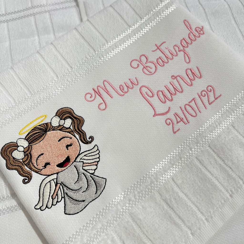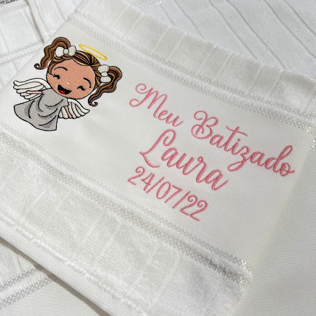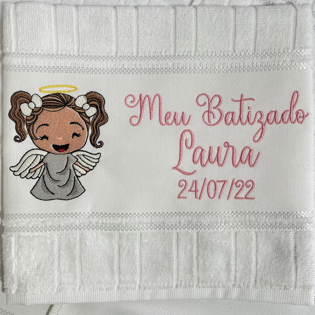 Toalha Toalhinha Branca de Mão Bordada Com Anjinha Para Batizado Personalizada Com Nome