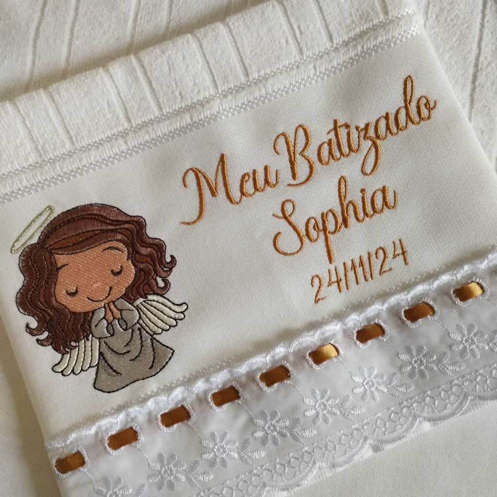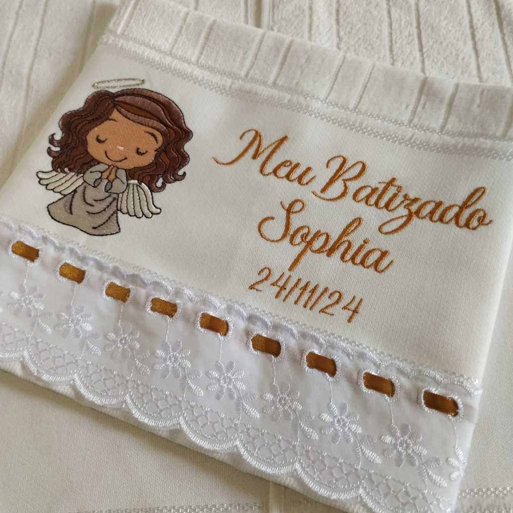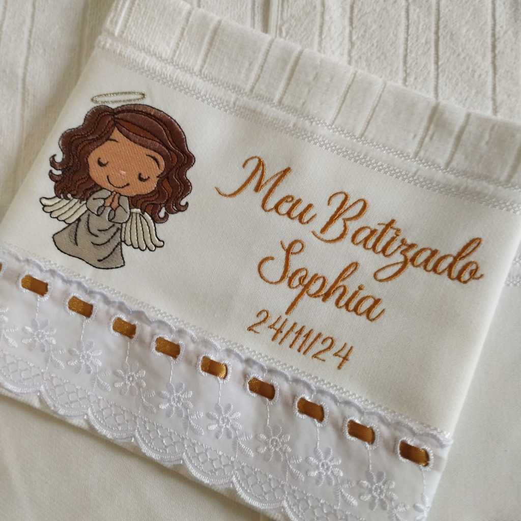 Toalha Toalhinha de Mão Branca Bordada Para Batizado Anjinha Anjinho Personalizada Nome Renda e Fita