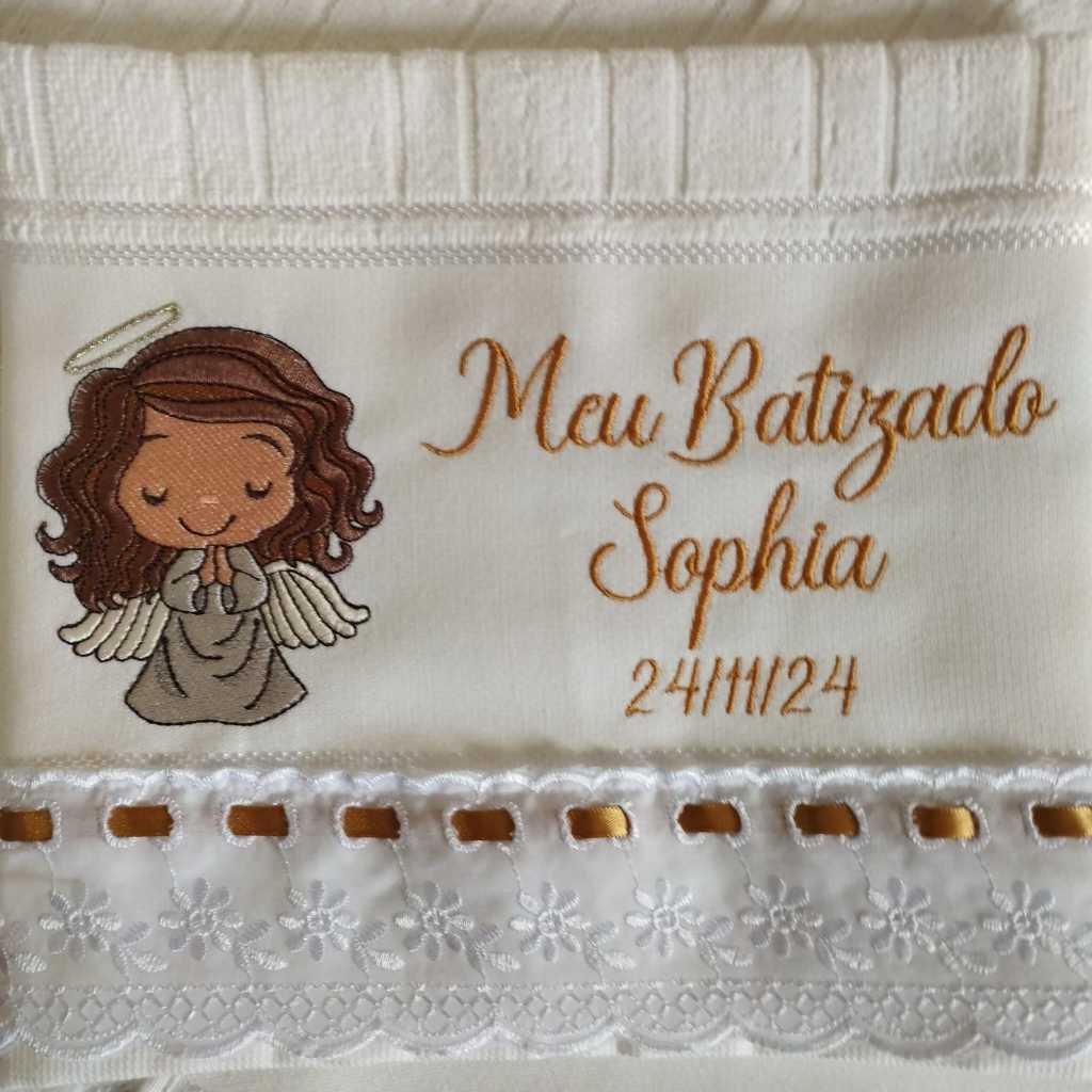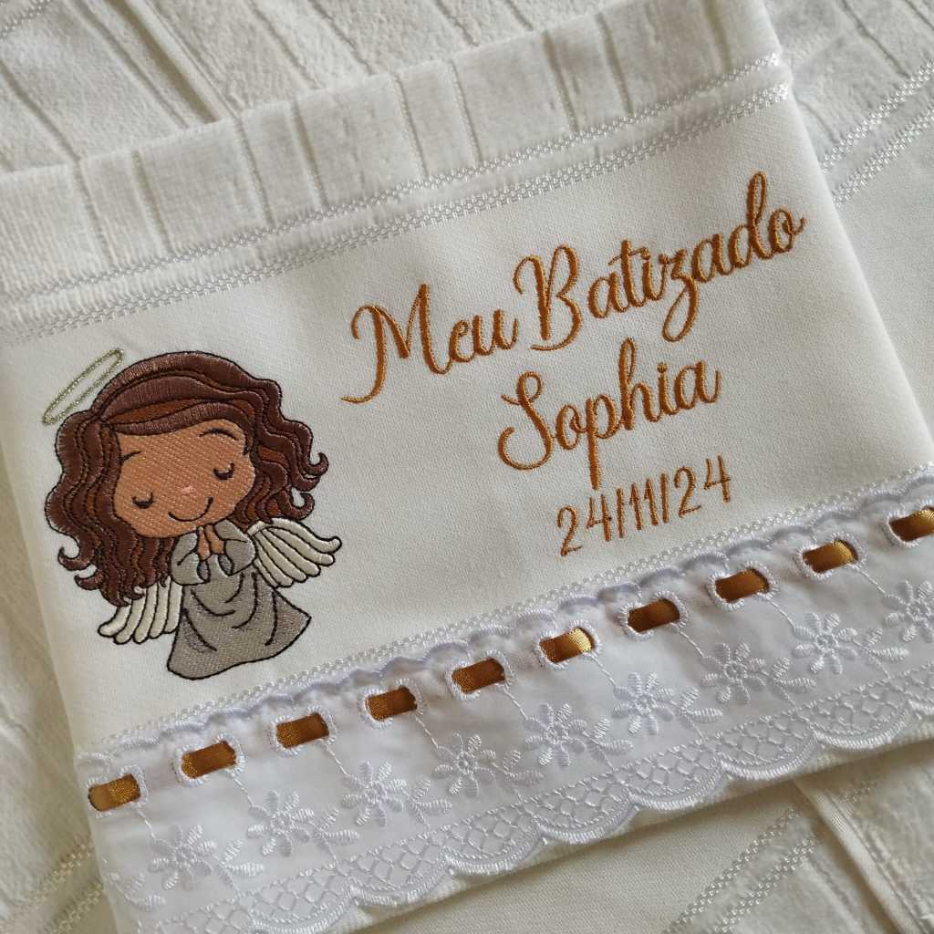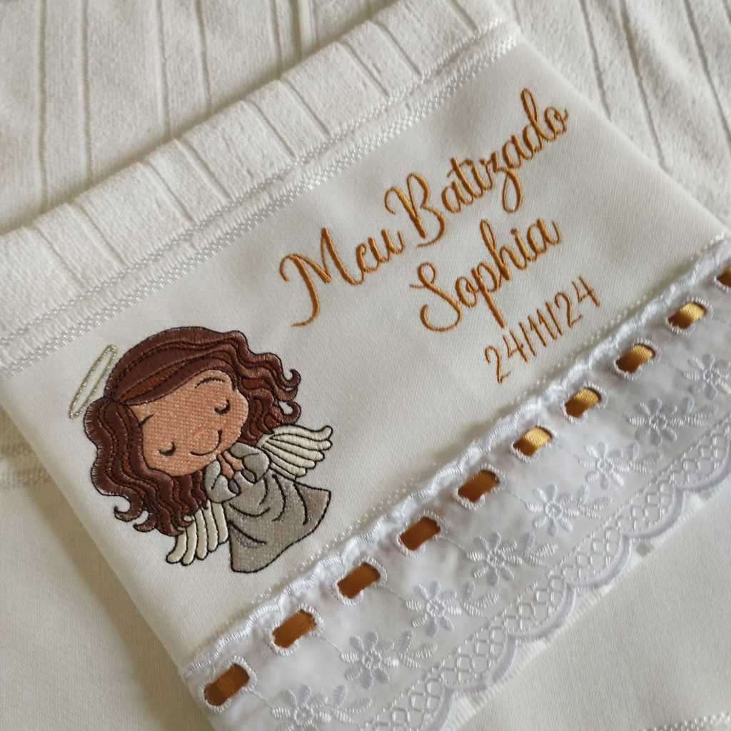 Toalha Toalhinha de Mão Branca Bordada Para Batizado Anjinha Anjinho Personalizada Nome Renda e Fita