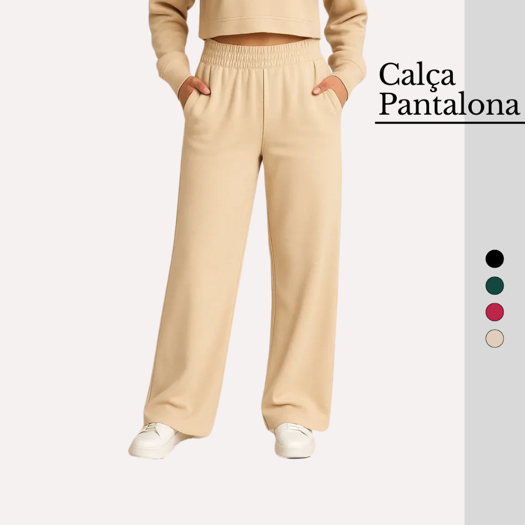 Calça Feminina Pantalona Moletom Moletinho Cintura Alta